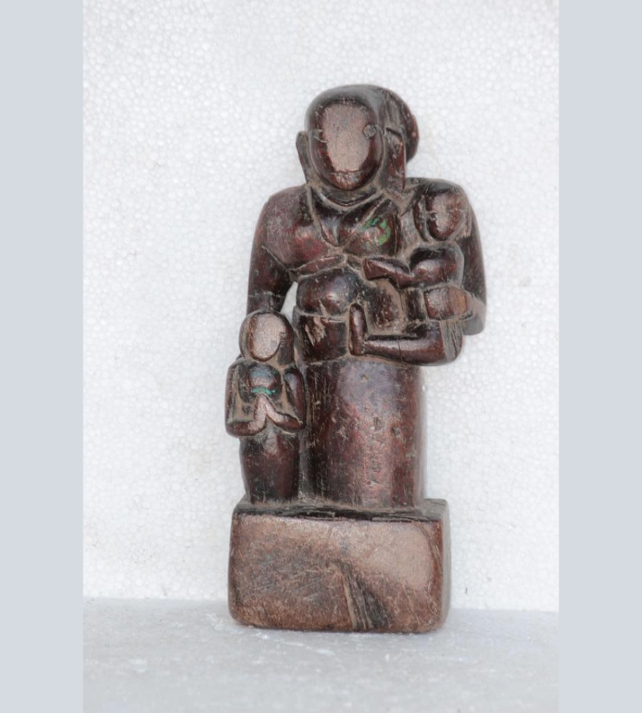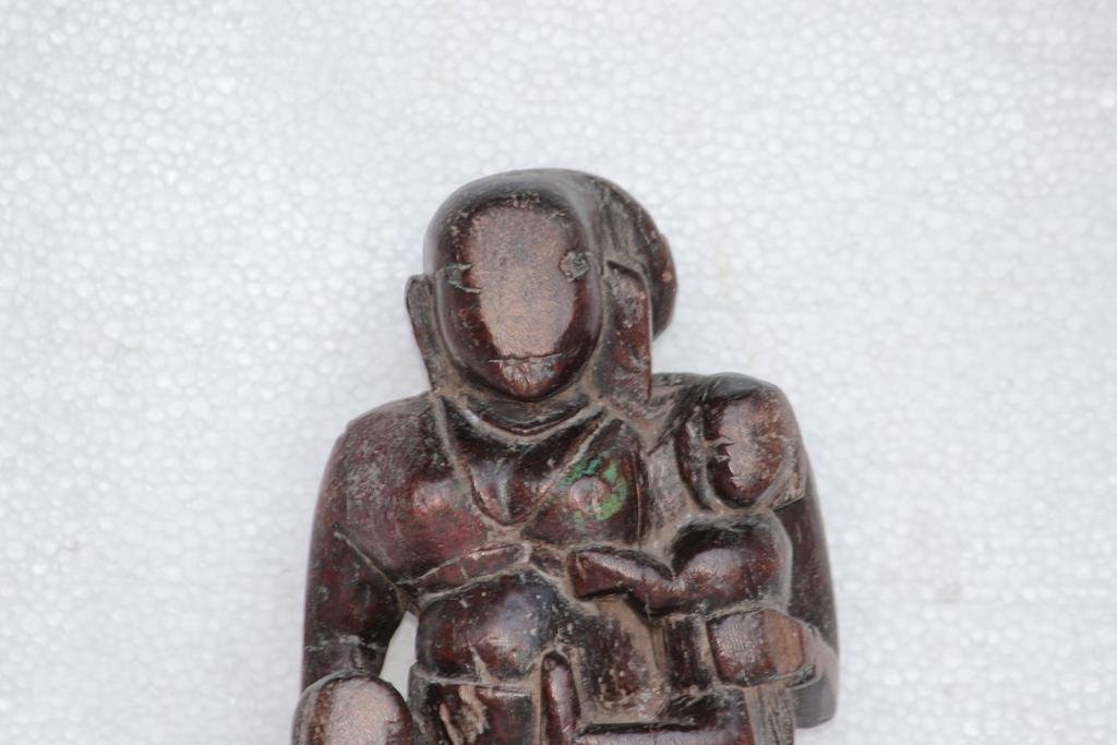 Wooden Panel Lady Child Carved Vintage Antique Indian Home Decor