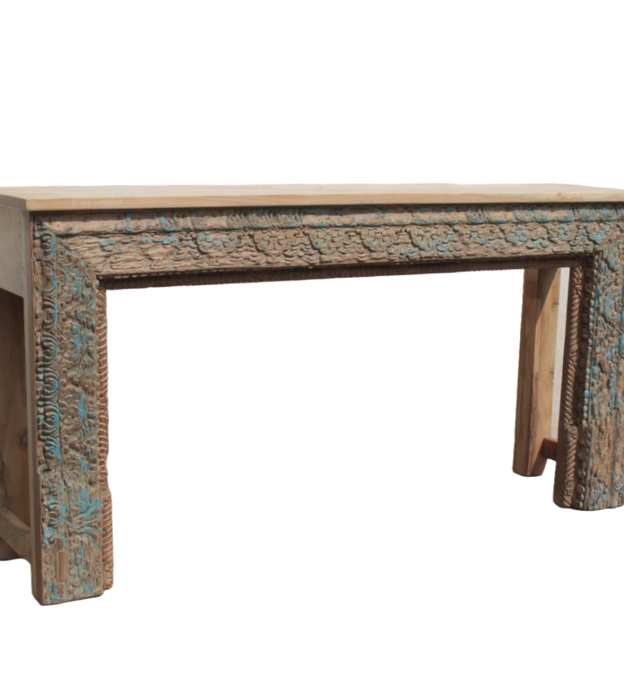 Wooden Carved Console Table | Distrssed Rustic Farmhouse Entryway Hall Table