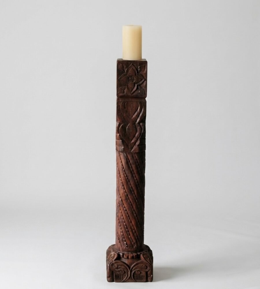 Candle Pillar | 3.8 ft tall Wooden Pillar Converted Into Candle Holder