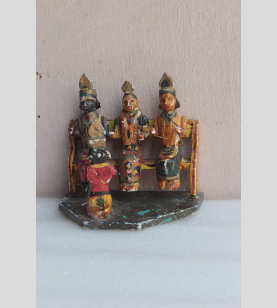 Old Wooden Nandi Figure Vintage Wooden Art Ware Home Temple Vastu Decor