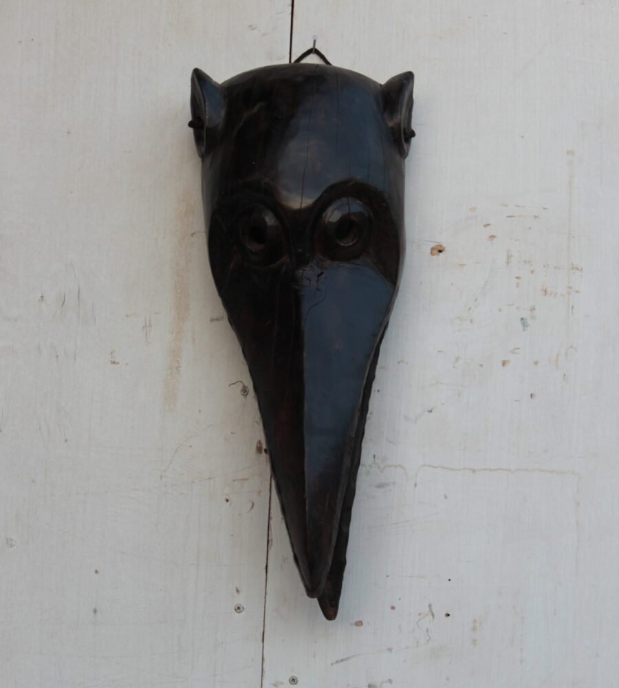1.8 feet Wooden Bird Mask with Open Beak- Wall Decor Art