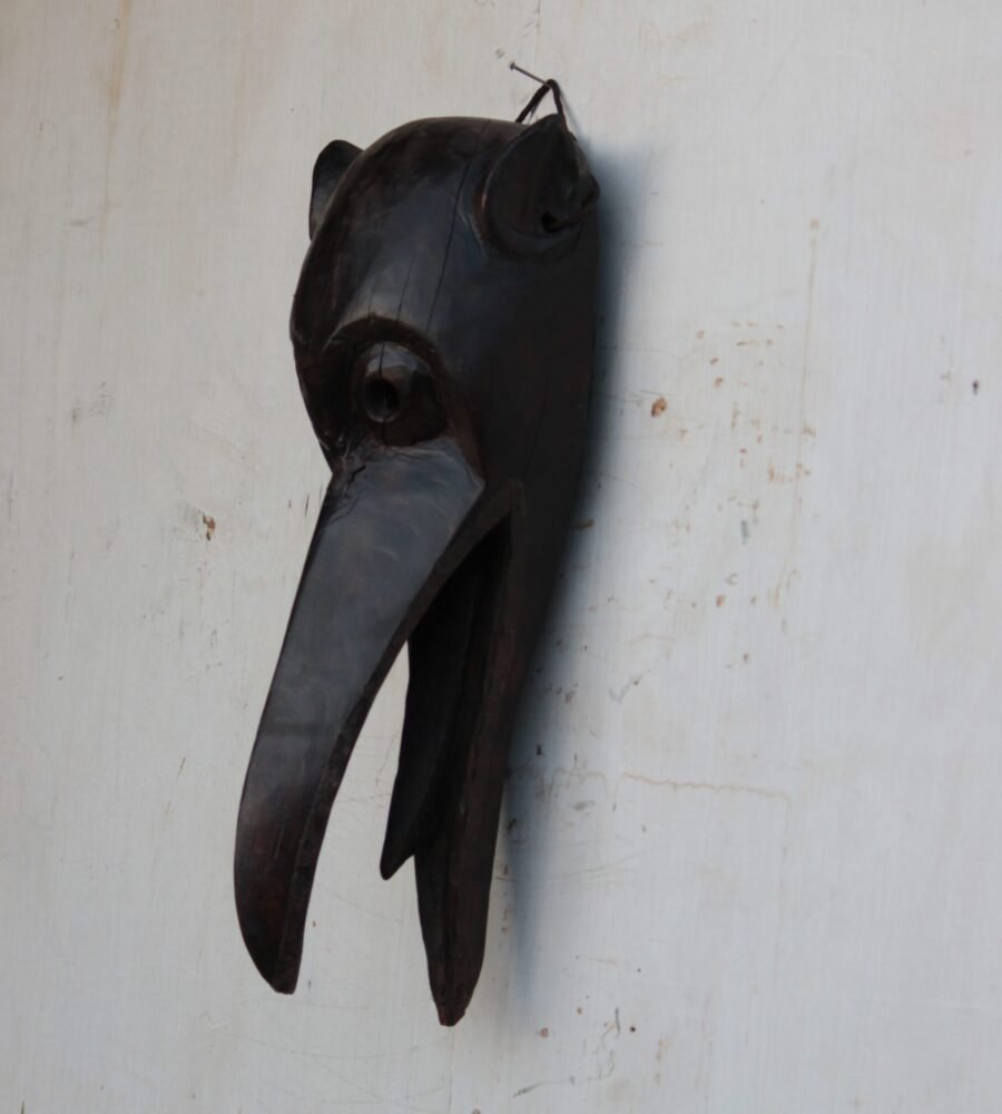 2.7 feet Wooden Bird Mask with Open Beak- Wall Decor Art