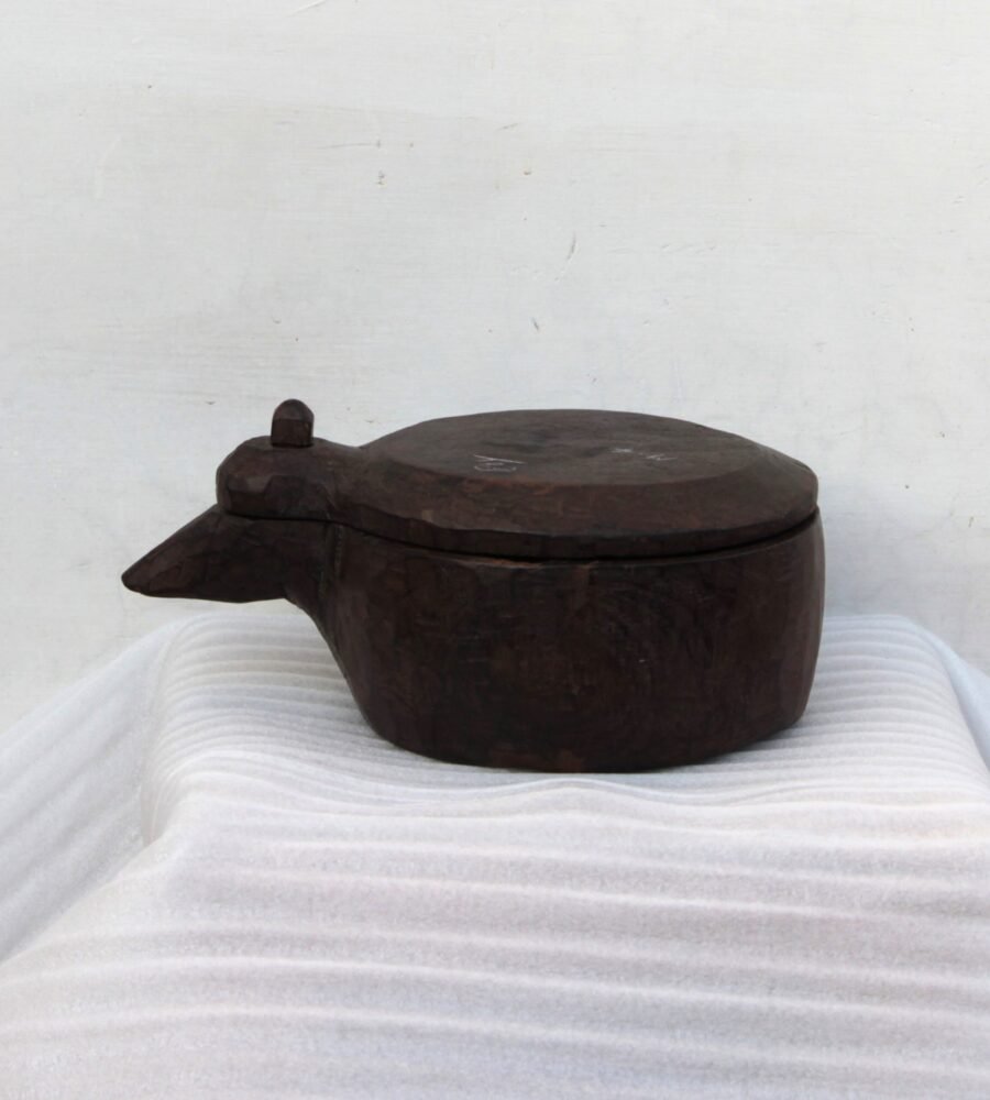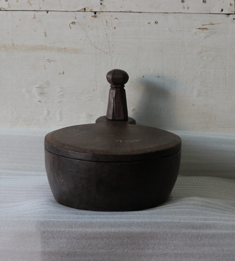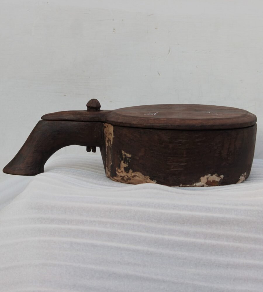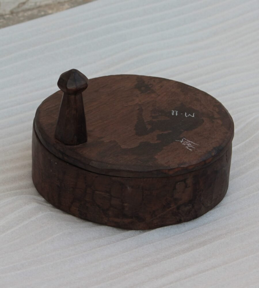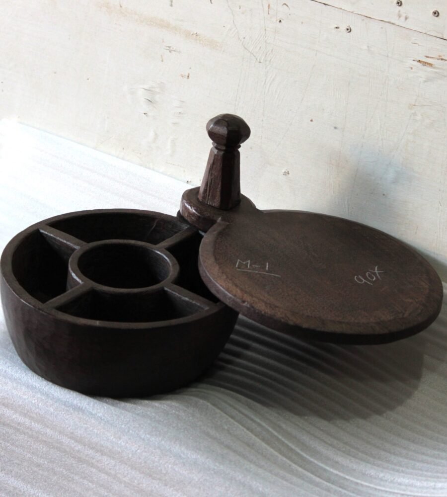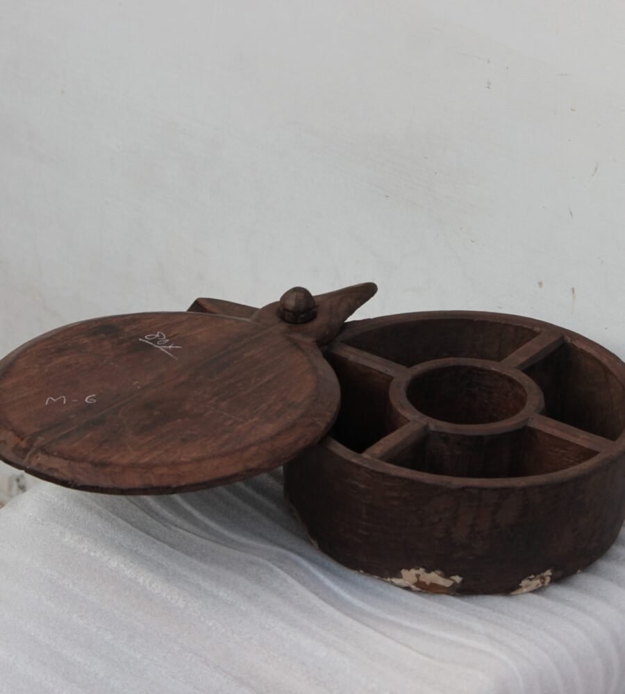 Antique Wooden Indian Spice Box with Swivel Lid – Origin India 19th century
