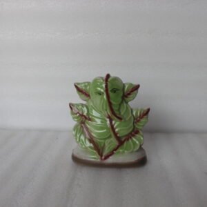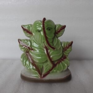 Leaf-Inspired Ceramic Ganesh Ji Idol – Green Porcelain Hindu God Statue, Home Decor