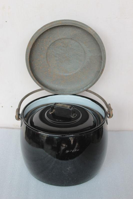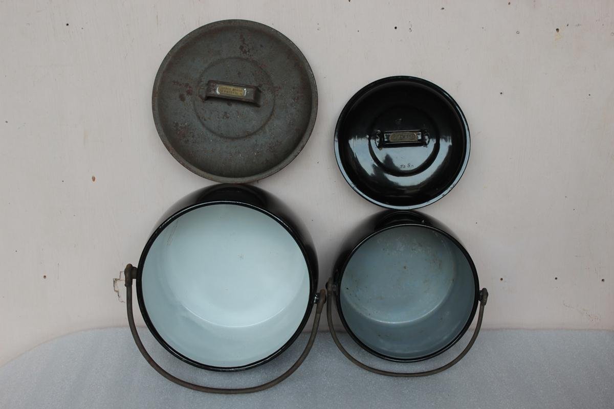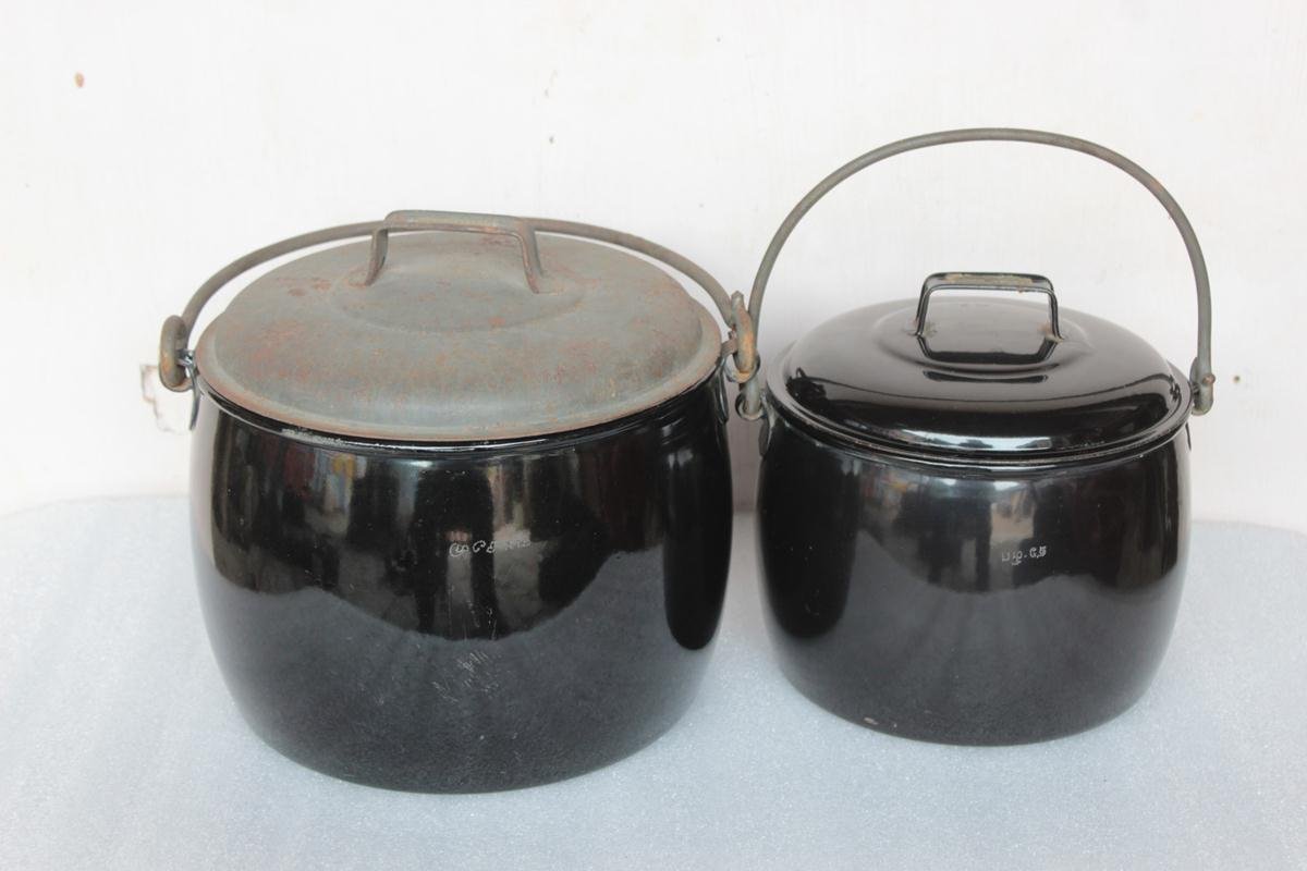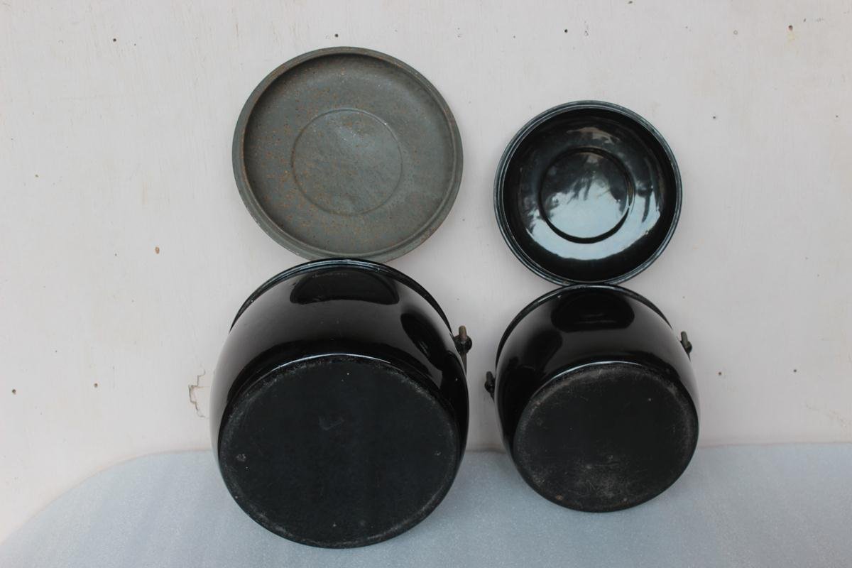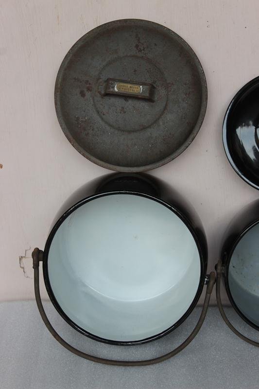 2 Pc Black Cooking Pot Decor Collectible Vintage Enamel Ware Kitchenware