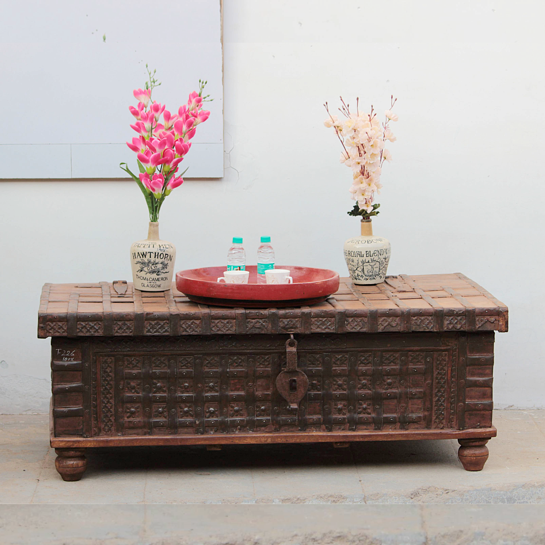 Timeless Elegance – 4.3 feet wide Vintage Teak Wood Coffee Table Trunk Original price was: ₹ 32,000.00.Current price is: ₹ 25,600.00.
