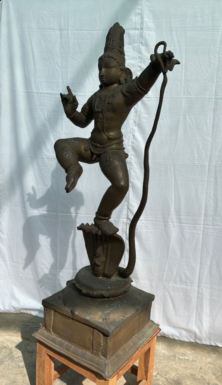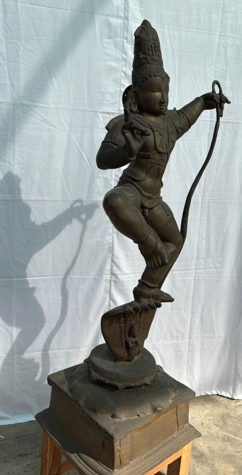 Divine 4-Foot Brass Kaliya Krishna – Exquisite Lost-Wax (Madhuchista Vidhana) Sculpture