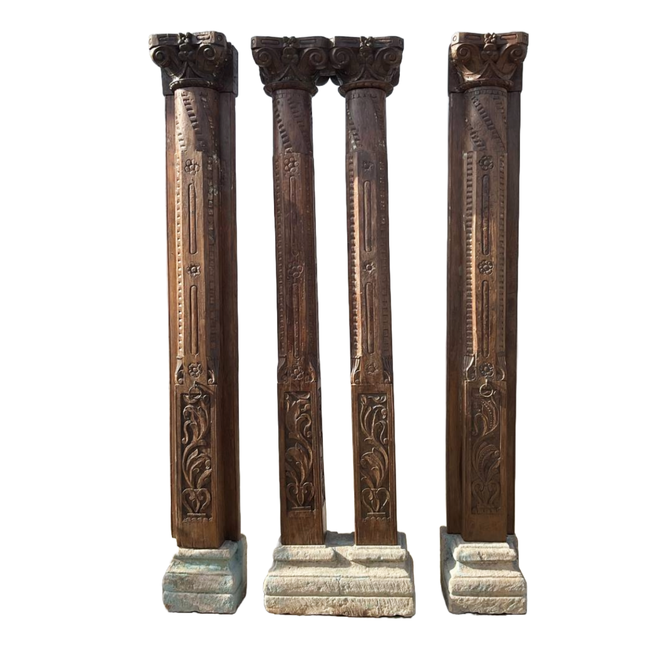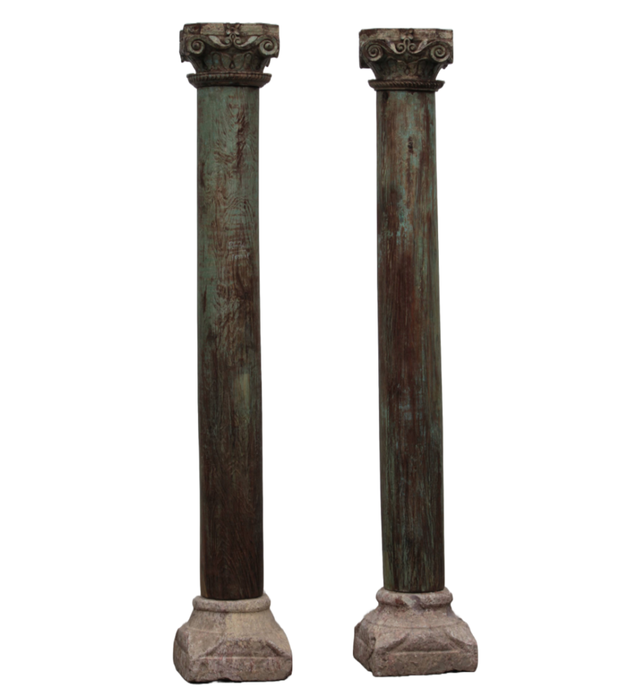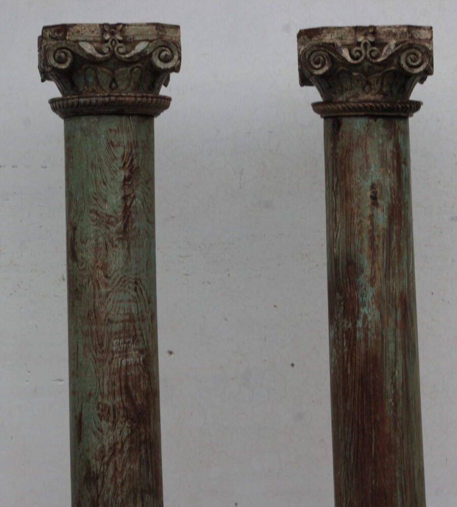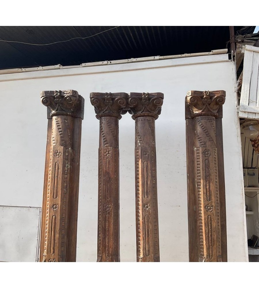 The weathered finish of these pillars enhances their antique appeal, making them perfect for adding a touch of history and sophistication to both modern and traditional settings. Whether used as standalone decorative elements or to complement your existing furnishings, these teak wood pillars are versatile and eye-catching. Bring a piece of vintage allure into your home with this exceptional set, ideal for creating a warm and inviting ambiance in any room.