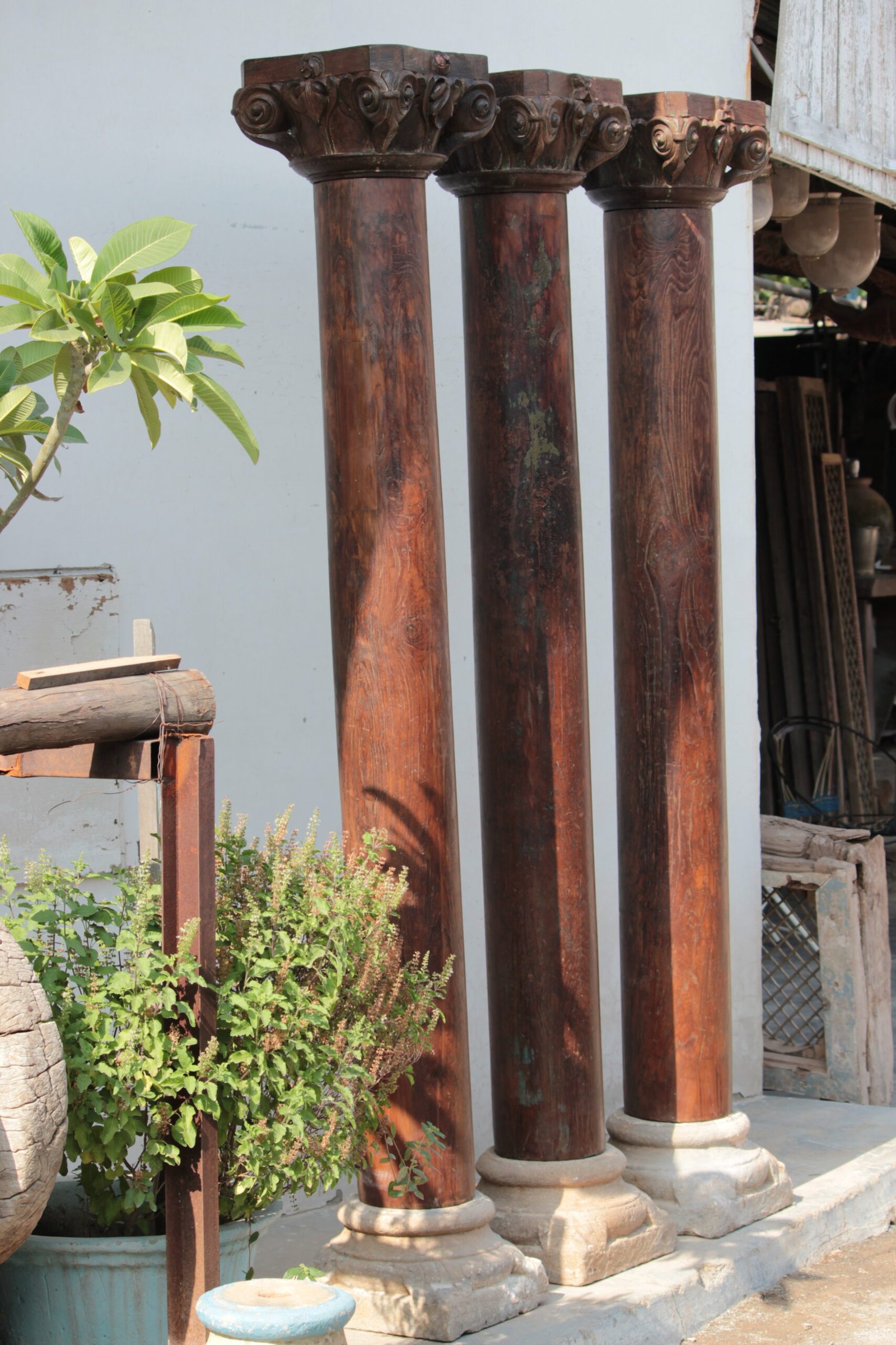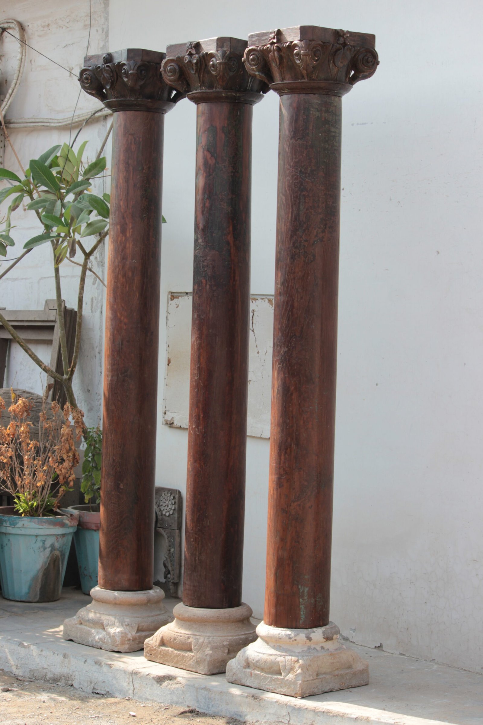 7.11 feet Indian Columns with Stone Base (Set of 3) – Your Home Furniture Store