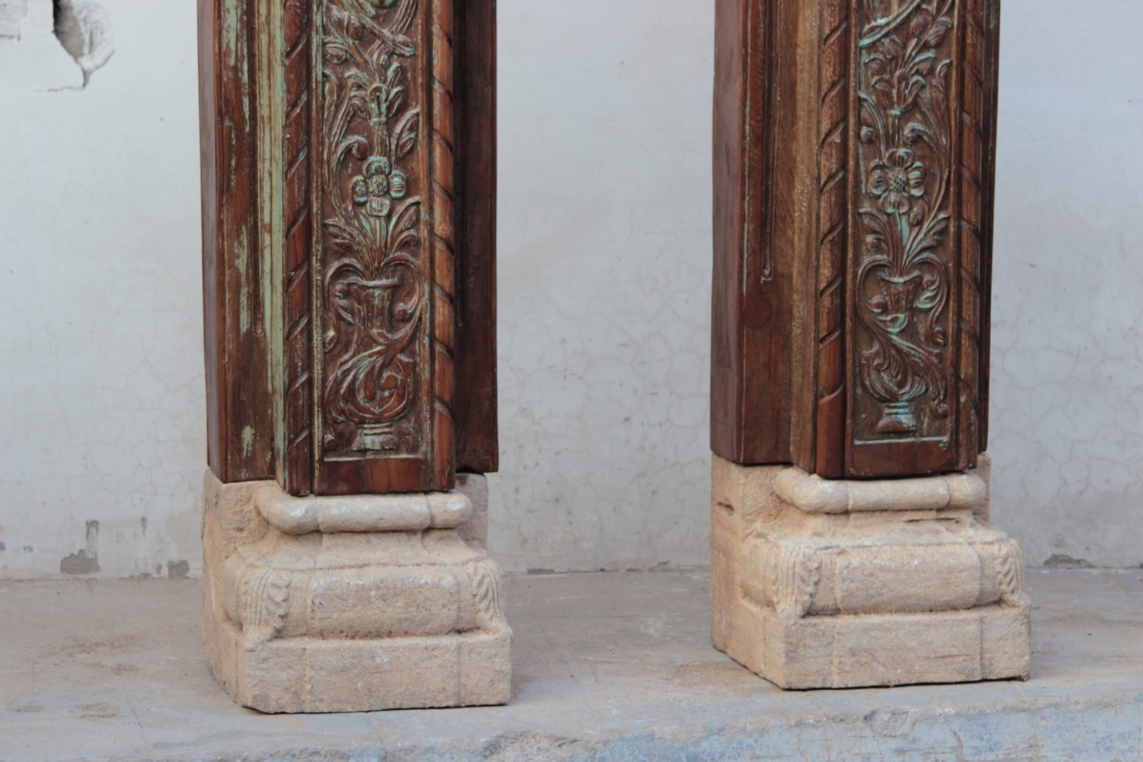 The weathered finish of these pillars enhances their antique appeal, making them perfect for adding a touch of history and sophistication to both modern and traditional settings. Whether used as standalone decorative elements or to complement your existing furnishings, these teak wood pillars are versatile and eye-catching. Bring a piece of vintage allure into your home with this exceptional set, ideal for creating a warm and inviting ambiance in any room.