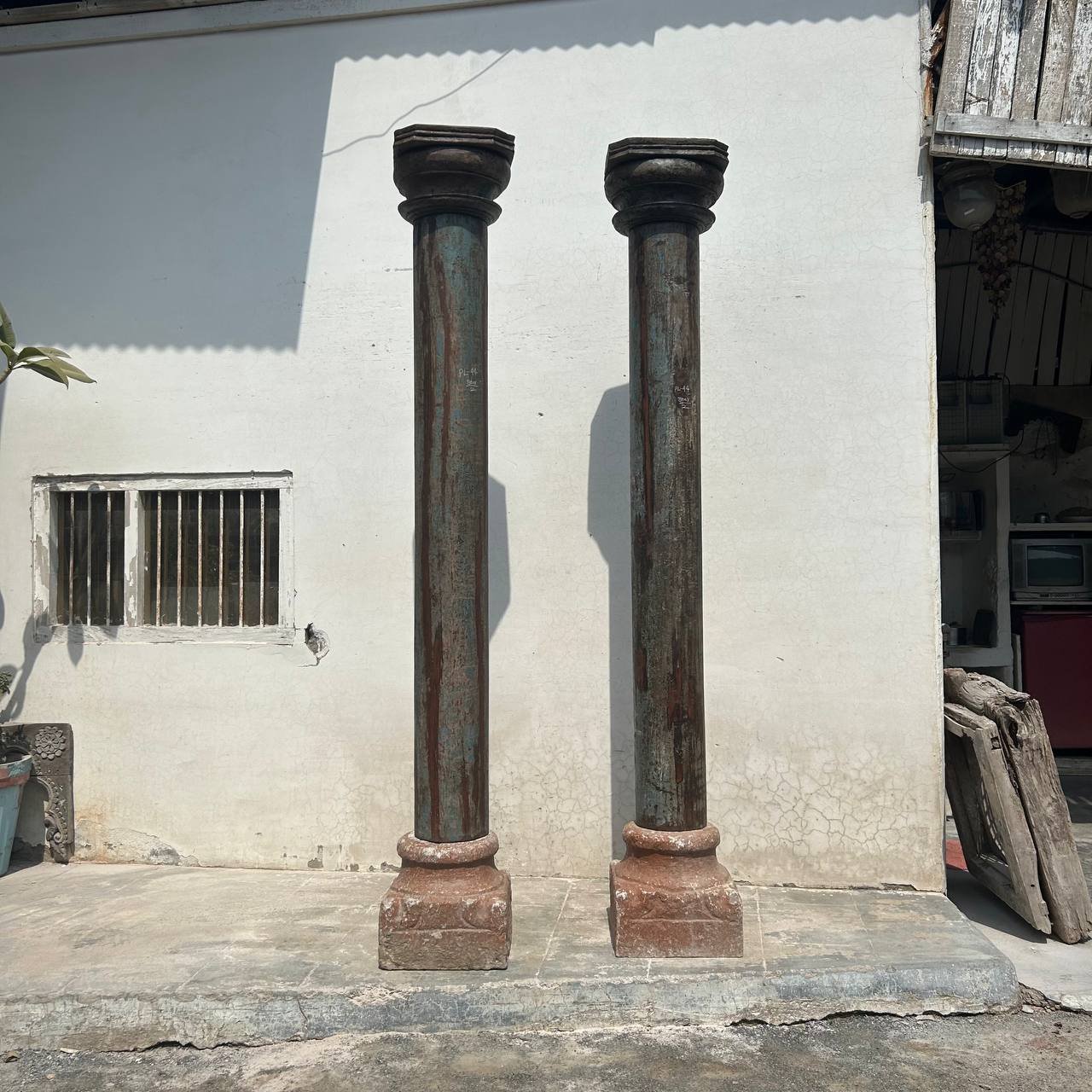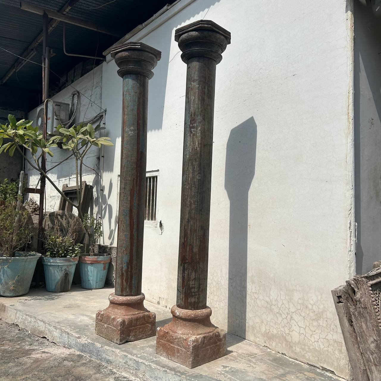 7.7 feet Teak Wood Antique Columns | Pair of Indian Pillars – Your Home Furniture Store