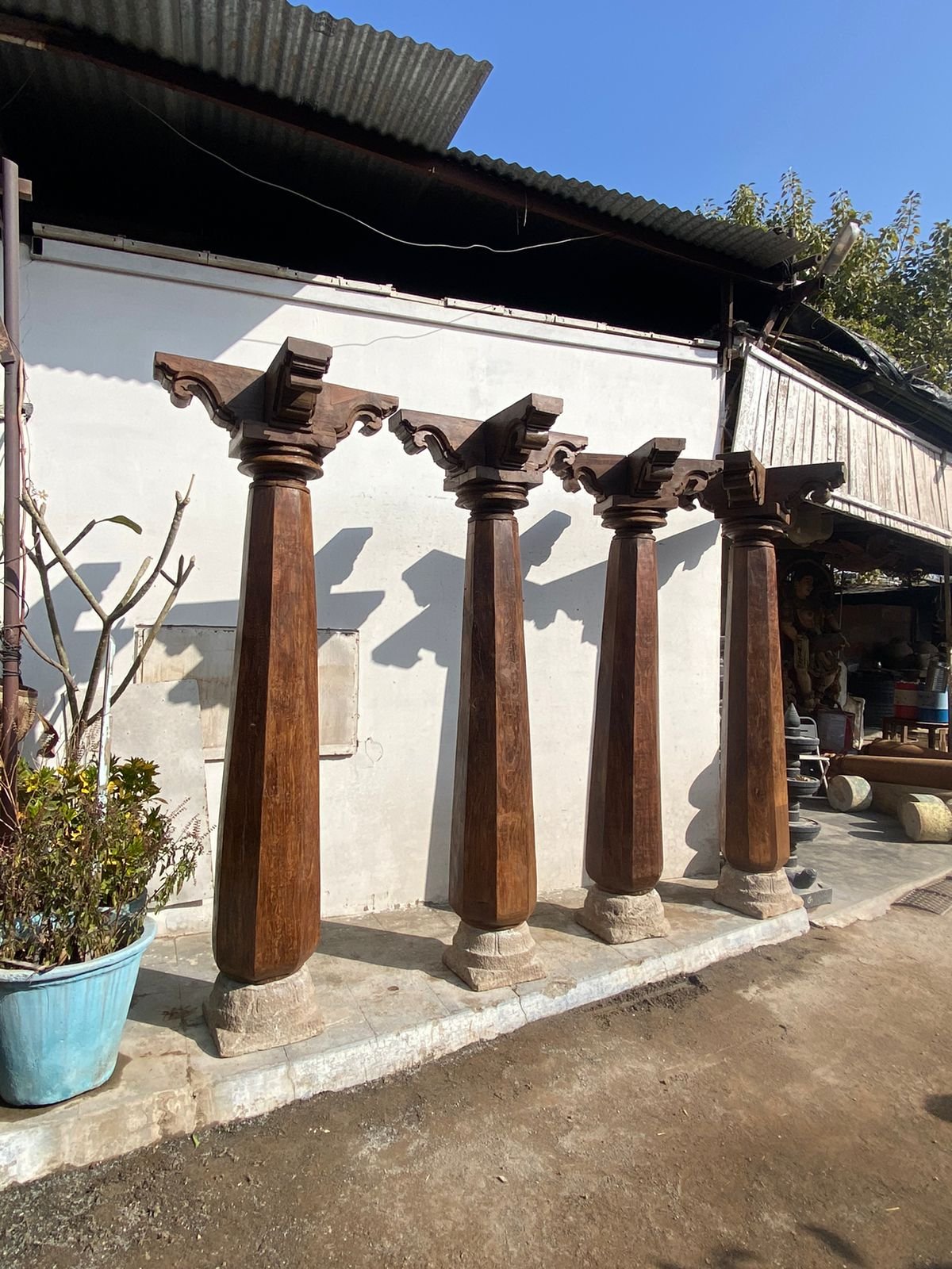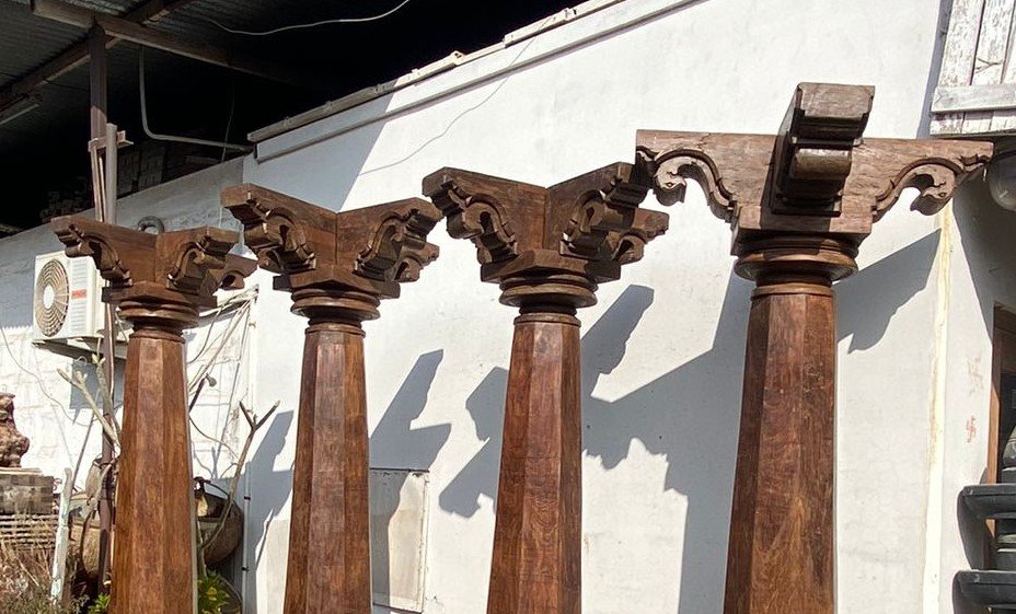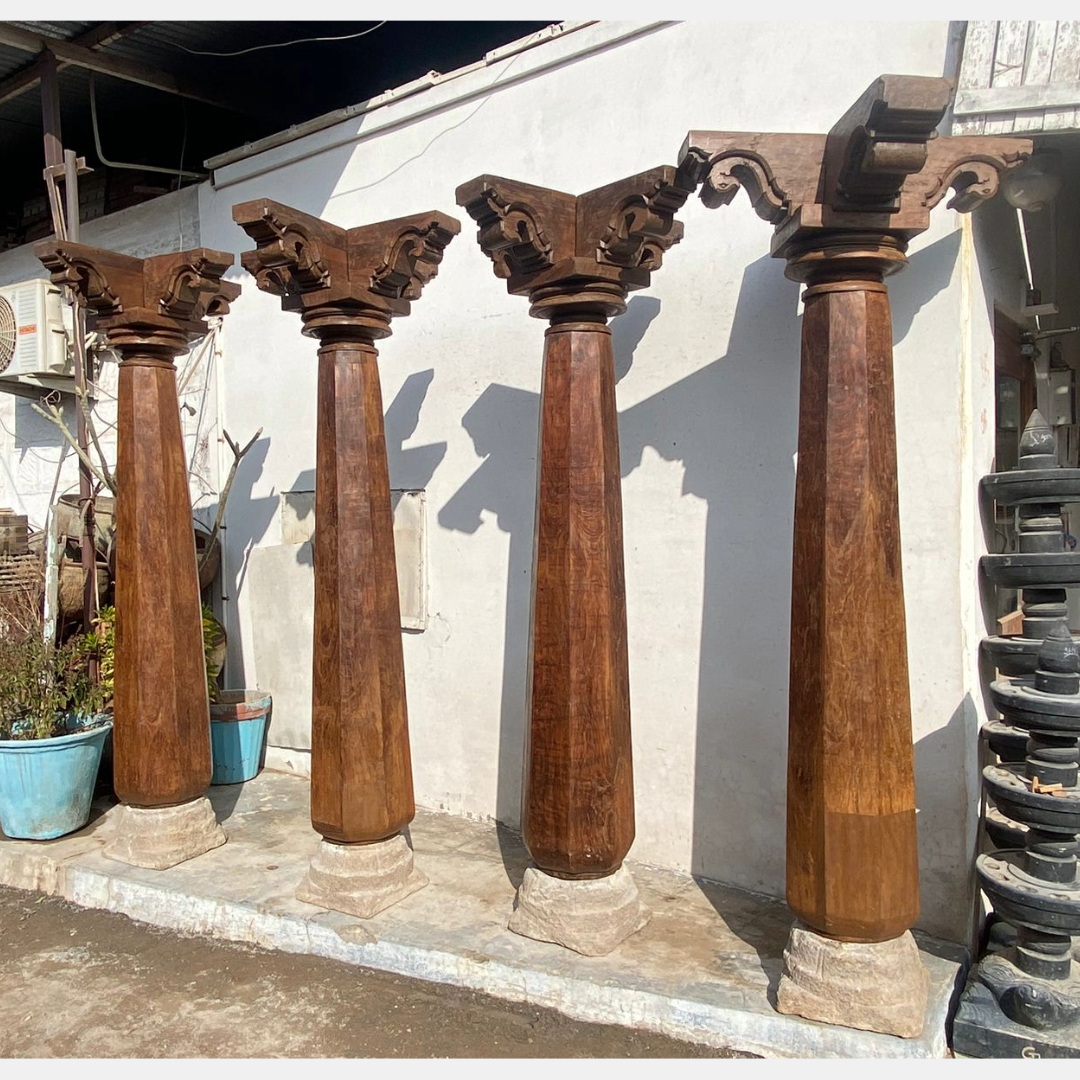 These columns are Sourced From Old Chettinad House in South India and they were kept in the corridors of traditional south Indian homes. These traditional columns adds good aesthetic values to rich heritage homes.