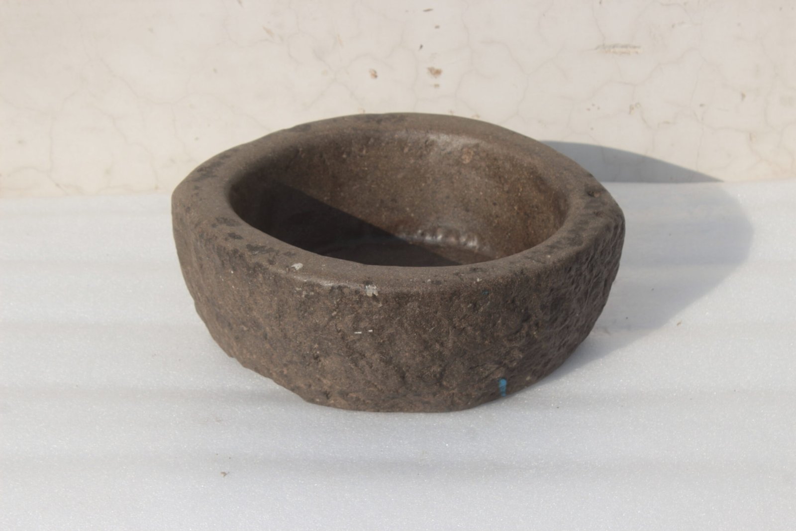 The old stone mortar is small and heavy, which makes it a very practical decoration that is not easily moved.
