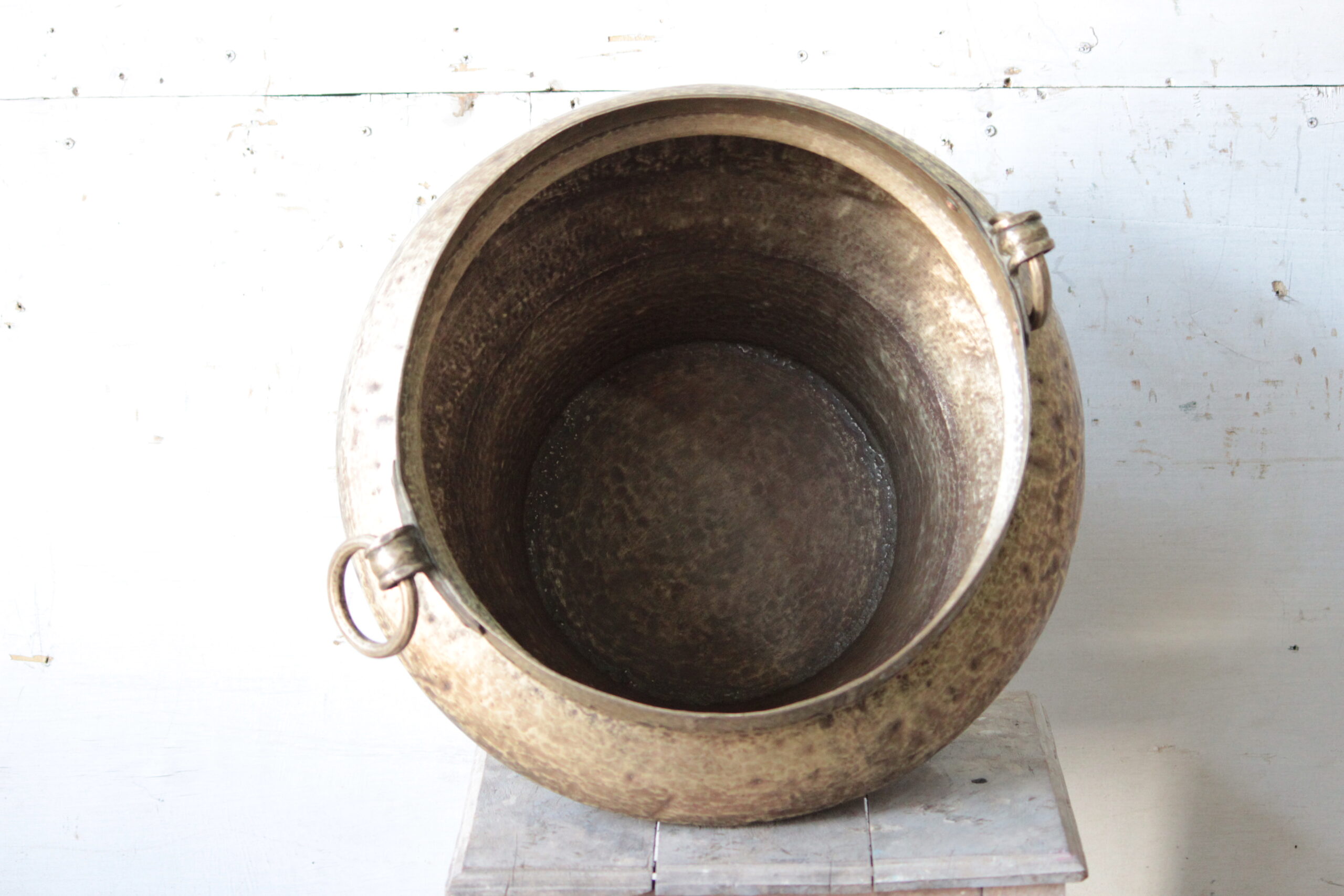 Antique Brass Cauldron Pot | Large Vintage Brass Planter | Rustic Farmhouse Decor