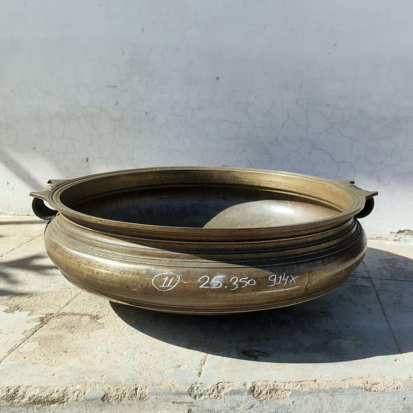 Crafted from high-quality brass, this large antique urli showcases a warm, golden hue that naturally deepens over time, developing a rich patina that enhances its vintage appeal. The aged finish is often characterized by subtle imperfections, marks, and tonal variations, all of which contribute to its authenticity and old-world charm. Each piece tells a story of its past, making it not just a decorative item but a conversation starter and a symbol of tradition.