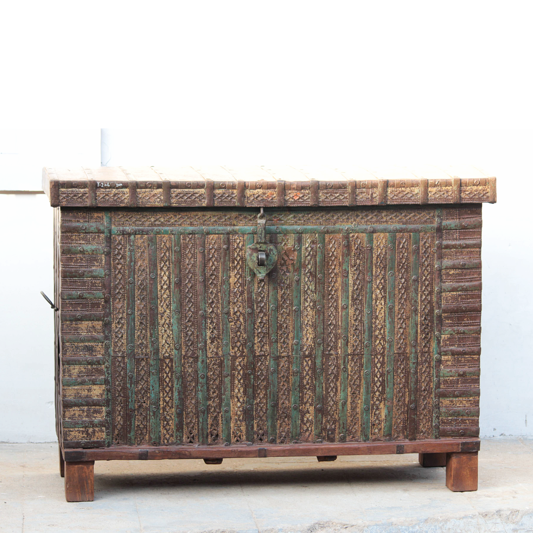 Antique Indian Painted Pitara Chest Buffet