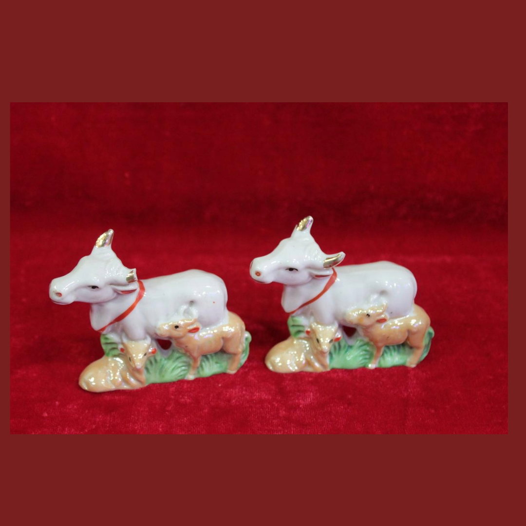 Each cow figurine showcases the craftsmanship of a bygone era, making them ideal for collectors of antique toys, farm-themed decor, or porcelain miniatures. Whether displayed on a shelf, nestled in a curio cabinet, or given as a thoughtful gift, this pair adds rustic warmth and nostalgic appeal to any space.