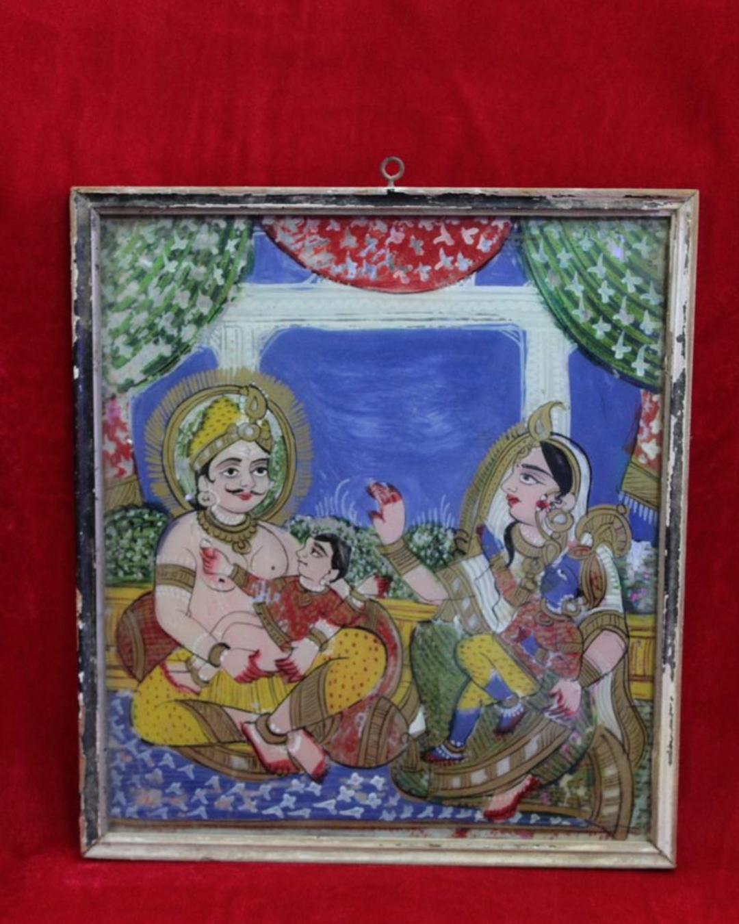 Antique Reverse Glass Painting (c. 1900) – Framed Indian Spiritual Artwork