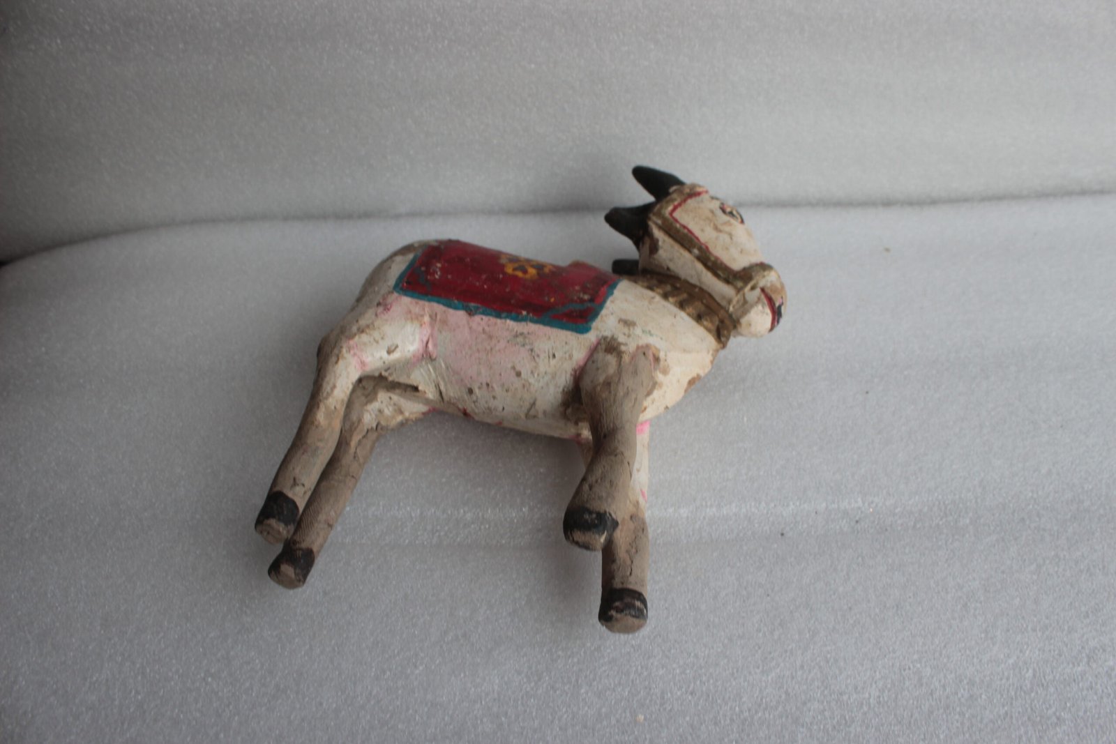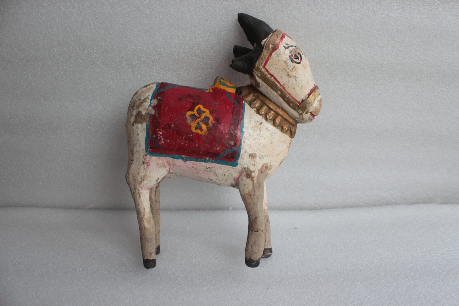 This antique wooden Nandi is a captivating piece of traditional Indian craftsmanship, embodying spiritual significance and timeless artistry. Hand-carved from solid wood and aged to perfection, this sacred bull—venerated as the devoted mount of Lord Shiva—represents strength, faith, and unwavering loyalty.
