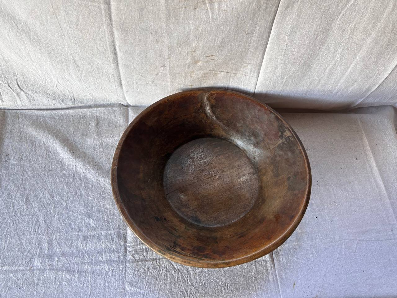 Antique Wooden Round Dough Kneading Bowl Parat Original Old Handmade