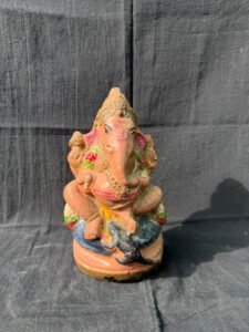 Made from natural, eco-friendly terracotta clay, this idol reflects traditional Indian craftsmanship with fine detailing and a rustic, earthy finish. Each piece is uniquely handmade, making it a one-of-a-kind creation filled with cultural charm and spiritual significance.