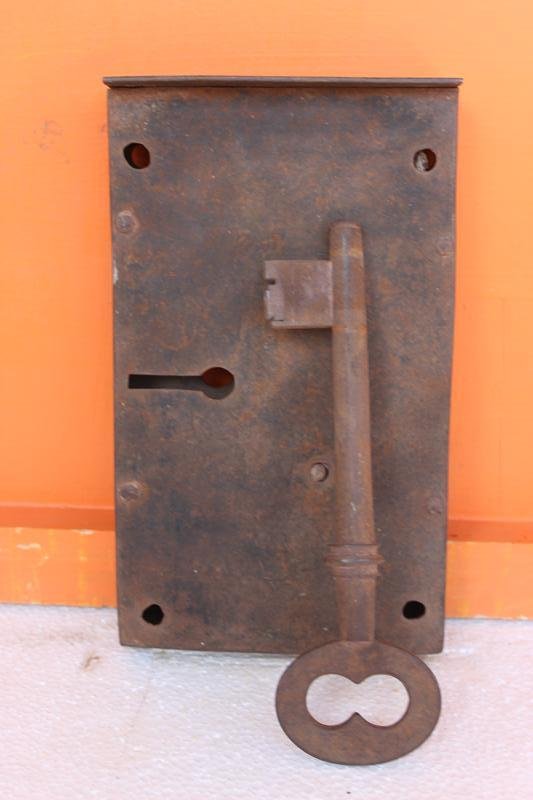 Big Door Iron Lock and Key Old Vintage Very Rare Collectible