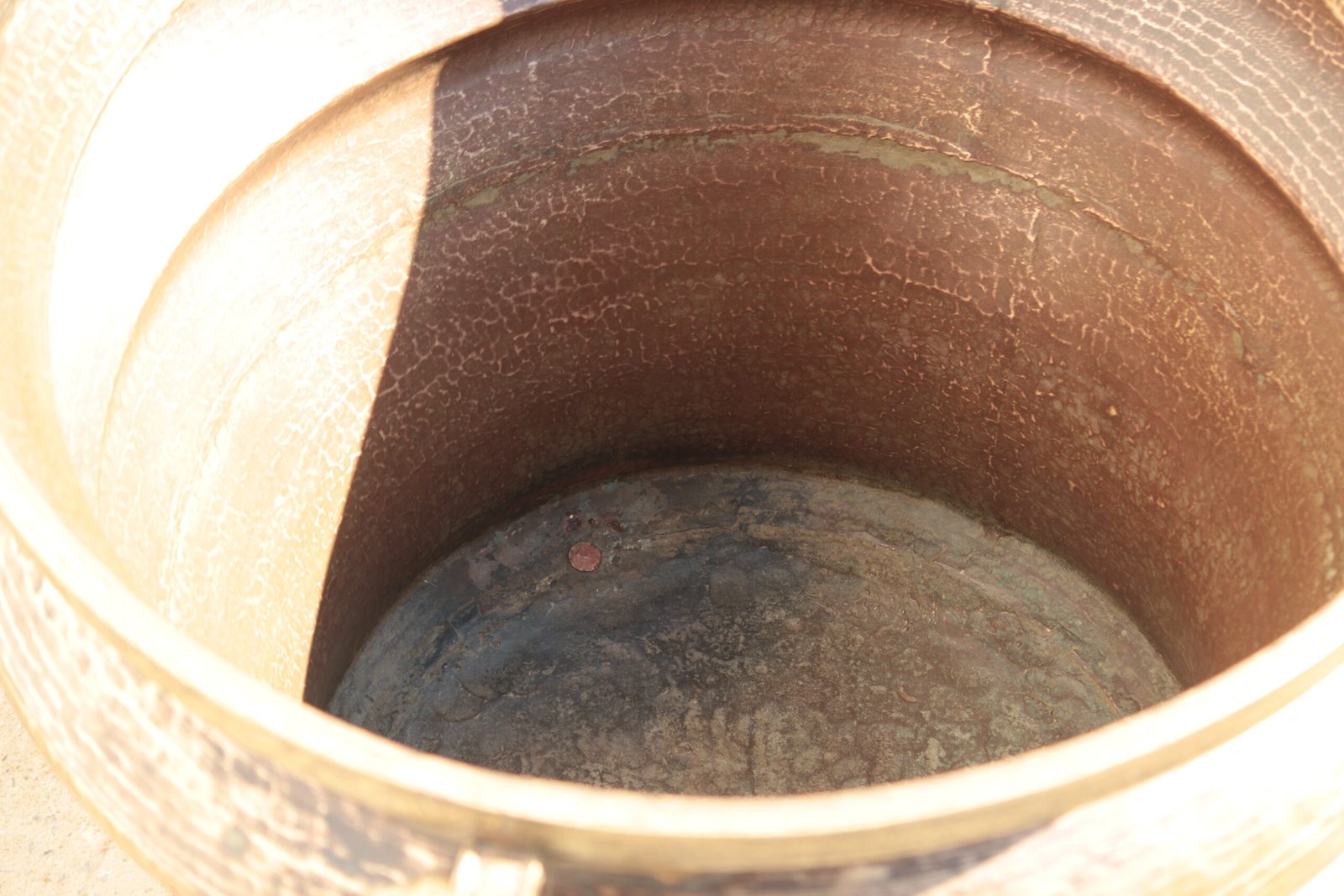 Antique Brass Ganglam Planter: Large 25-Inch Vintage Hand-Hammered Vessel