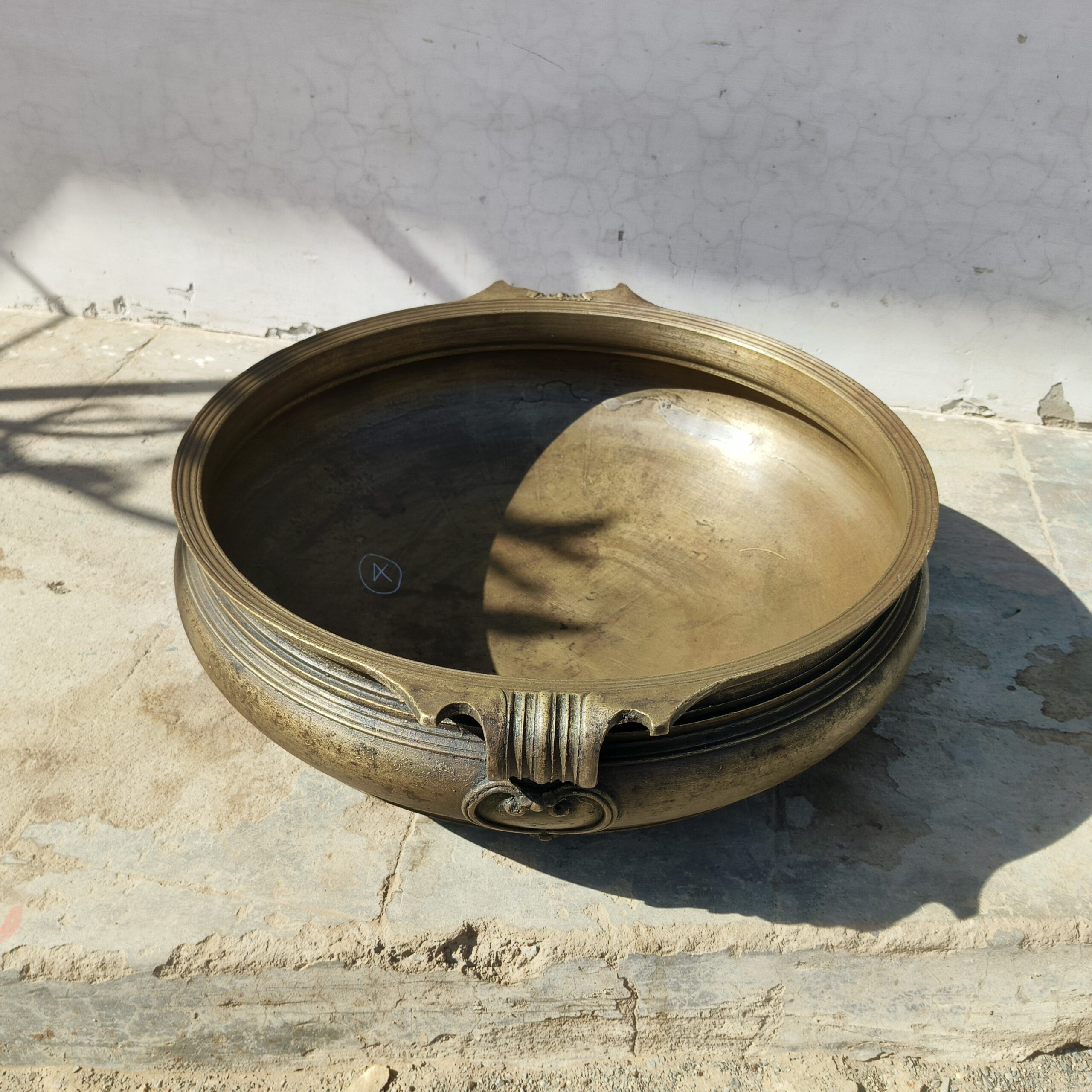 This beautiful brass Urli is from southern part of India. In old times this was used as a cooking utensil as this is made from seven metals which are goo for health. This beautiful antique Urli can now be used for floating candles and flowers. This decor passing generations can be used as an aquarium, a flower vase, a cookware etc.