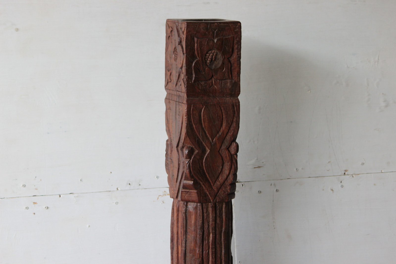 This hand-carved wooden pillar is a striking example of rustic architectural decor, blending traditional craftsmanship with a substantial, grounded presence. Standing at an impressive 3 feet 10 inches, it functions as a floor-standing statement piece.