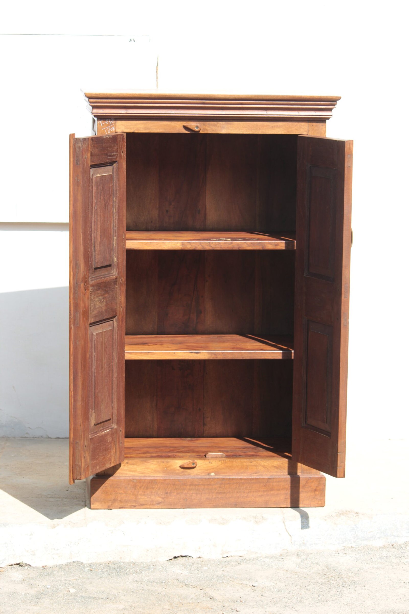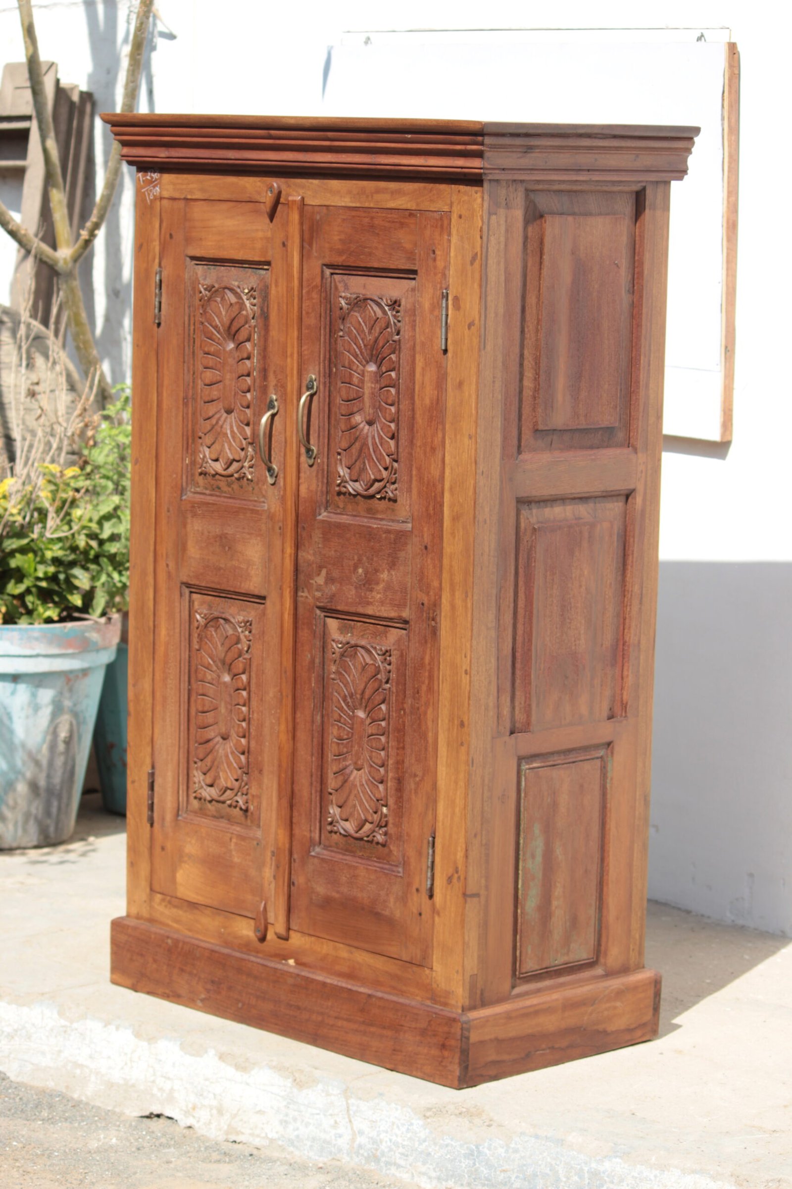 This small wooden carved cabinet features intricate detailing, showcasing craftsmanship and elegance. Made from high-quality wood, the cabinet has a compact yet stylish design, perfect for adding a touch of charm to any room. The ornate carvings on the doors or sides highlight its classic appeal, making it a standout piece. Ideal for storing small items, it combines both functionality and aesthetic appeal, offering a blend of traditional beauty with practical storage solutions.