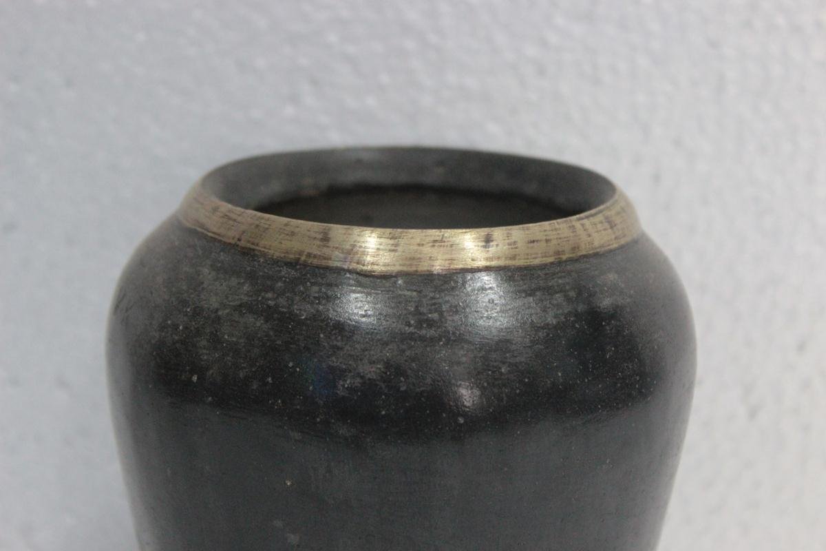 Cement Flower Pot Antique Old Vintage Brass Ring Fitted Collectible