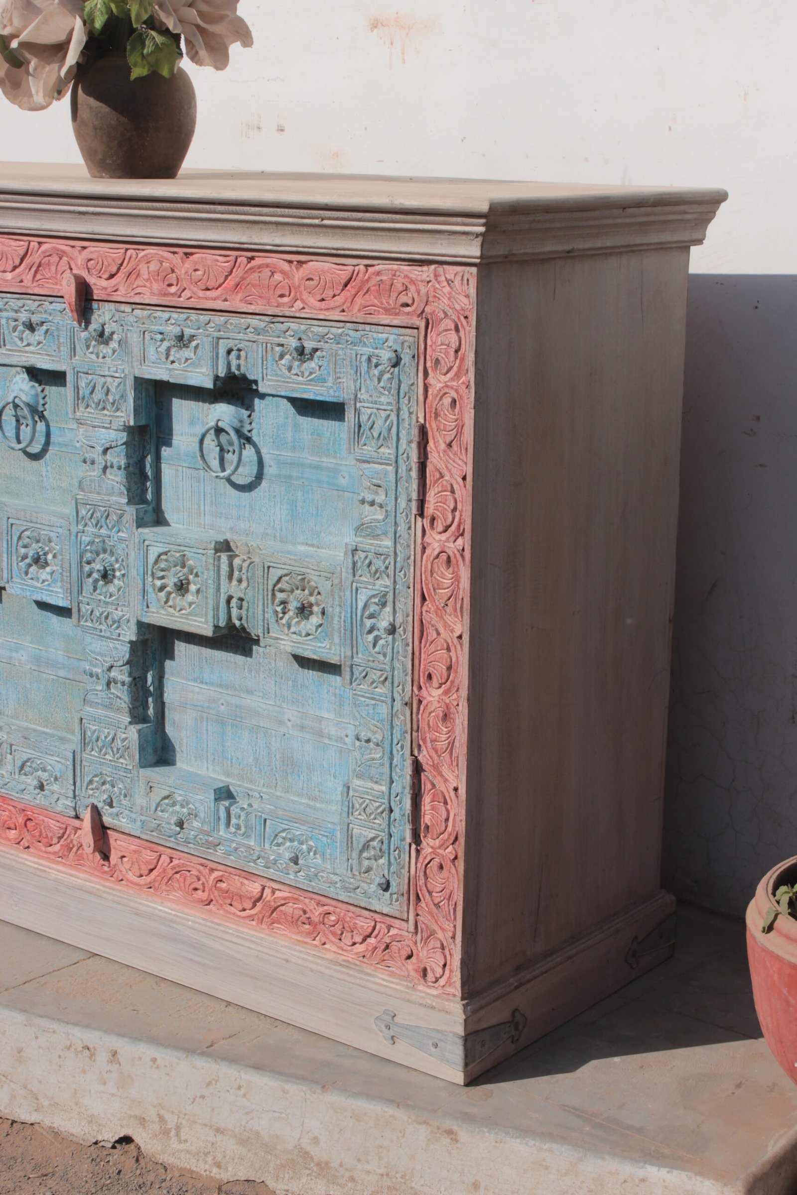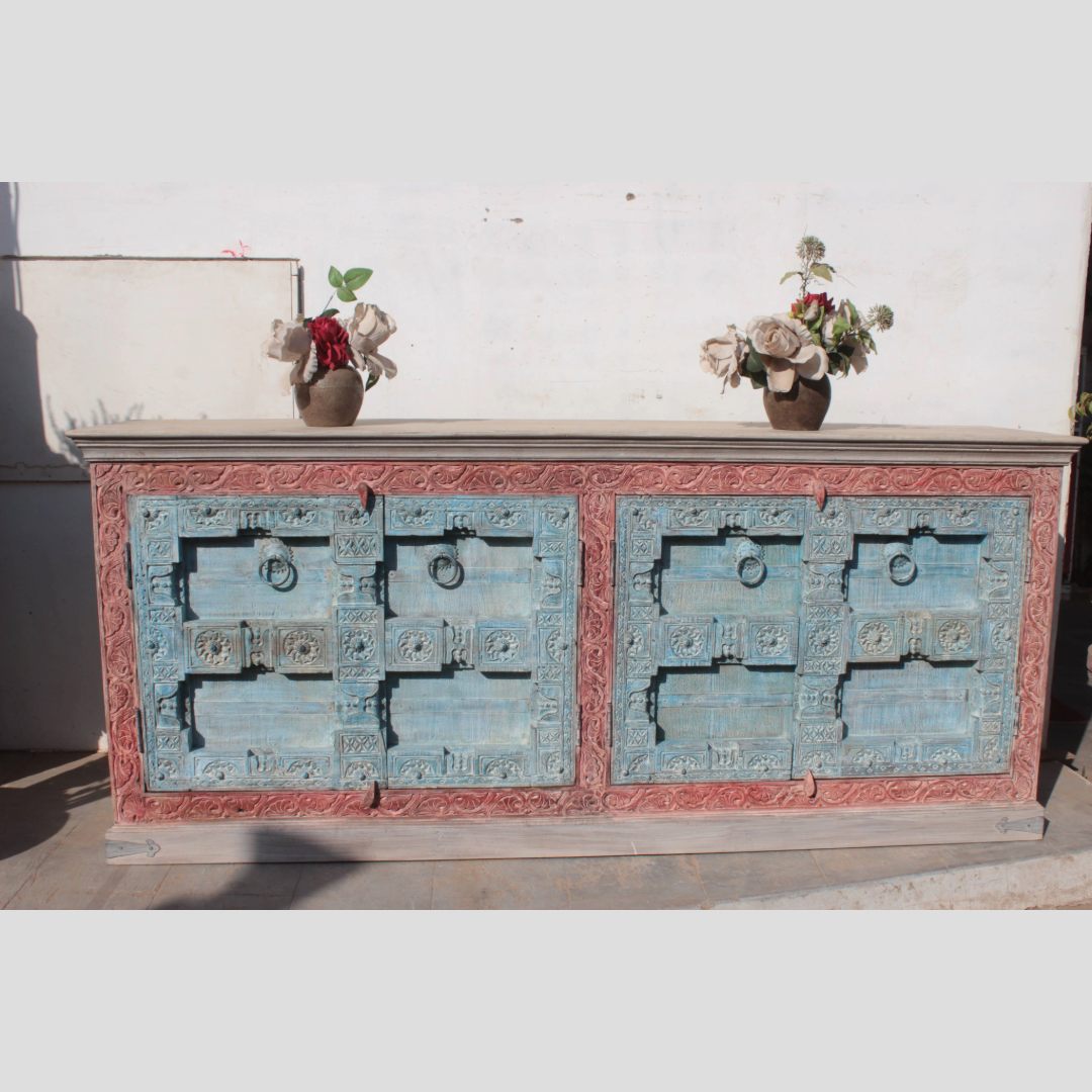 This antique wooden sideboard is a perfect blend of vintage charm and timeless elegance, offering both style and functionality. Expertly crafted from high-quality, solid wood, it features intricate detailing and a beautiful, aged finish that enhances its rich, classic appeal. The sideboard’s design showcases the craftsmanship of a bygone era, with subtle carvings and carefully constructed compartments that provide both visual interest and practicality. Ideal for displaying treasured collectibles, fine china, or other decorative items, this piece brings a warm, rustic atmosphere to any space. Its spacious storage areas also offer a functional solution for everyday use, allowing you to organize your home in a way that complements the vintage aesthetic. Whether used as a buffet in the dining room, a storage cabinet in the living room, or even as an accent piece in a hallway, this antique sideboard exudes sophistication and durability. A true statement piece, it adds character and history to any interior, making it a must-have for collectors of vintage furniture or anyone looking to incorporate a sense of heritage into their home decor.