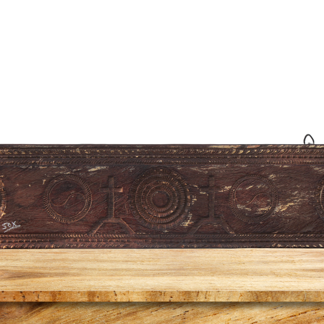 Each inch tells a story of days gone by, evoking a sense of nostalgia and intrigue. With its warm, aged patina and rich tones, this panel adds depth and authenticity to any space it adorns. Whether displayed as a standalone piece or integrated into a larger design scheme, it commands attention and sparks conversation, serving as a focal point of admiration. Embrace the romance of the past with this Antique Teak Wood Panel, a cherished artifact that bridges generations and infuses any environment with a sense of heritage and elegance.