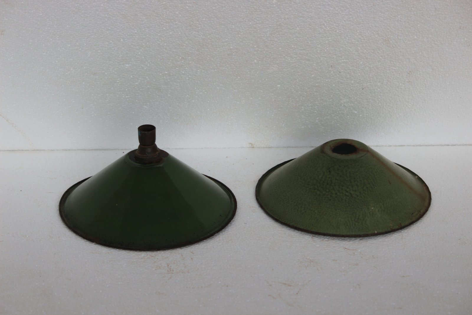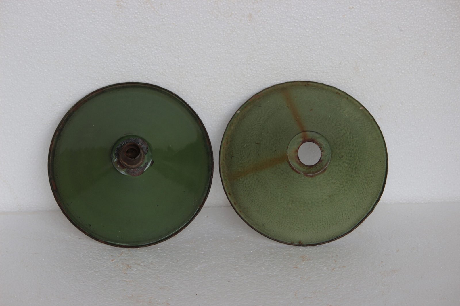 Enamel Green Electric Lamp Shade Pair1900s Old Vintage Antique