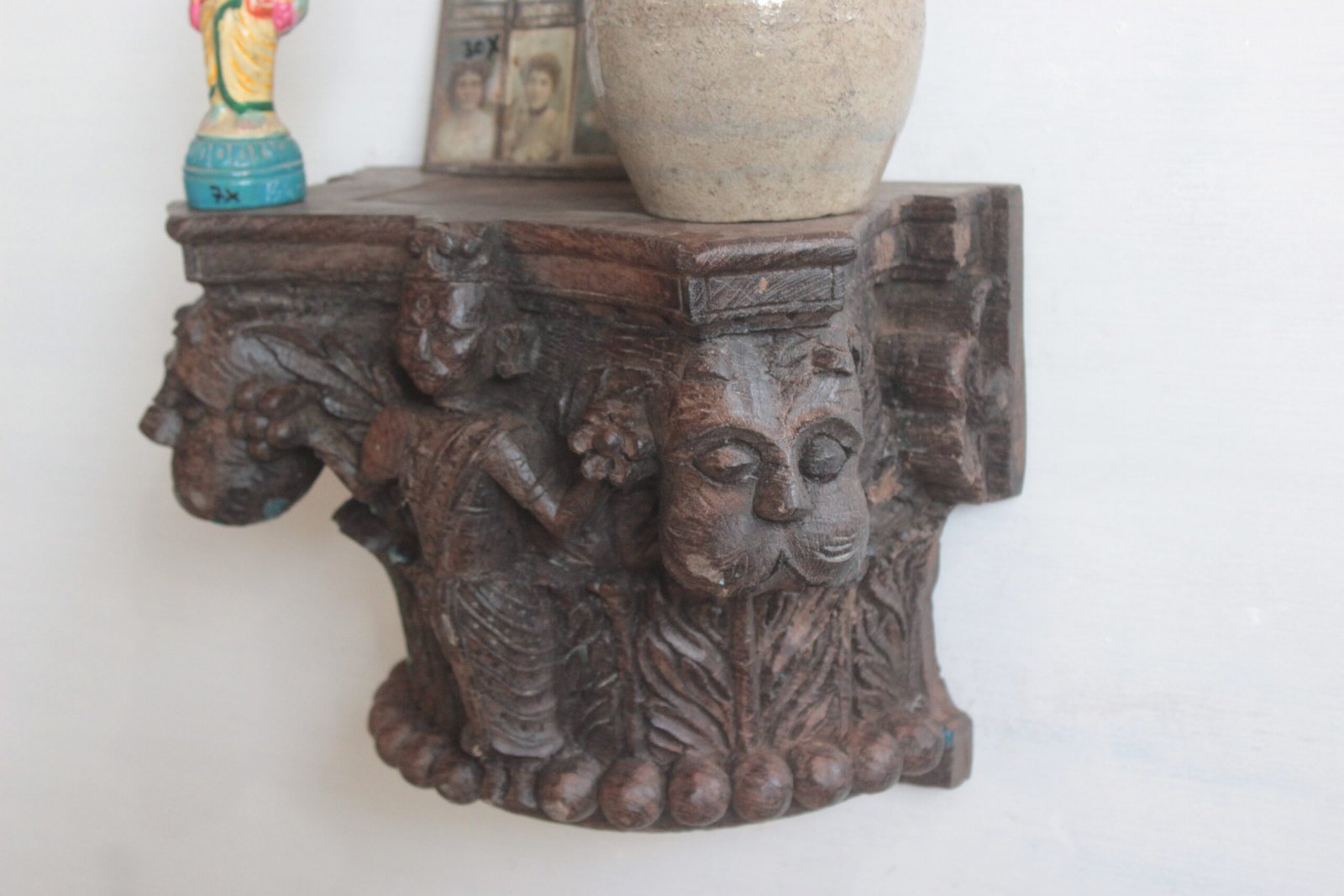 Floating Shelf Wooden Decor Art Wall Shelf | Vintage Wooden Face Carved Shelve