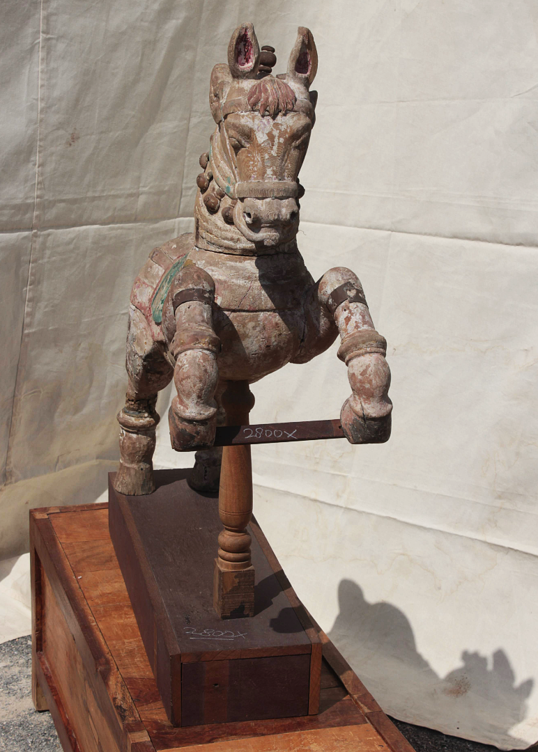 - Placing a traditional antique piece against minimalist, modern décor creates an interesting contrast. The raw, rustic feel of the wooden horse can stand out in spaces with neutral or sleek modern furniture, balancing the modern aesthetics with timeless craftsmanship.