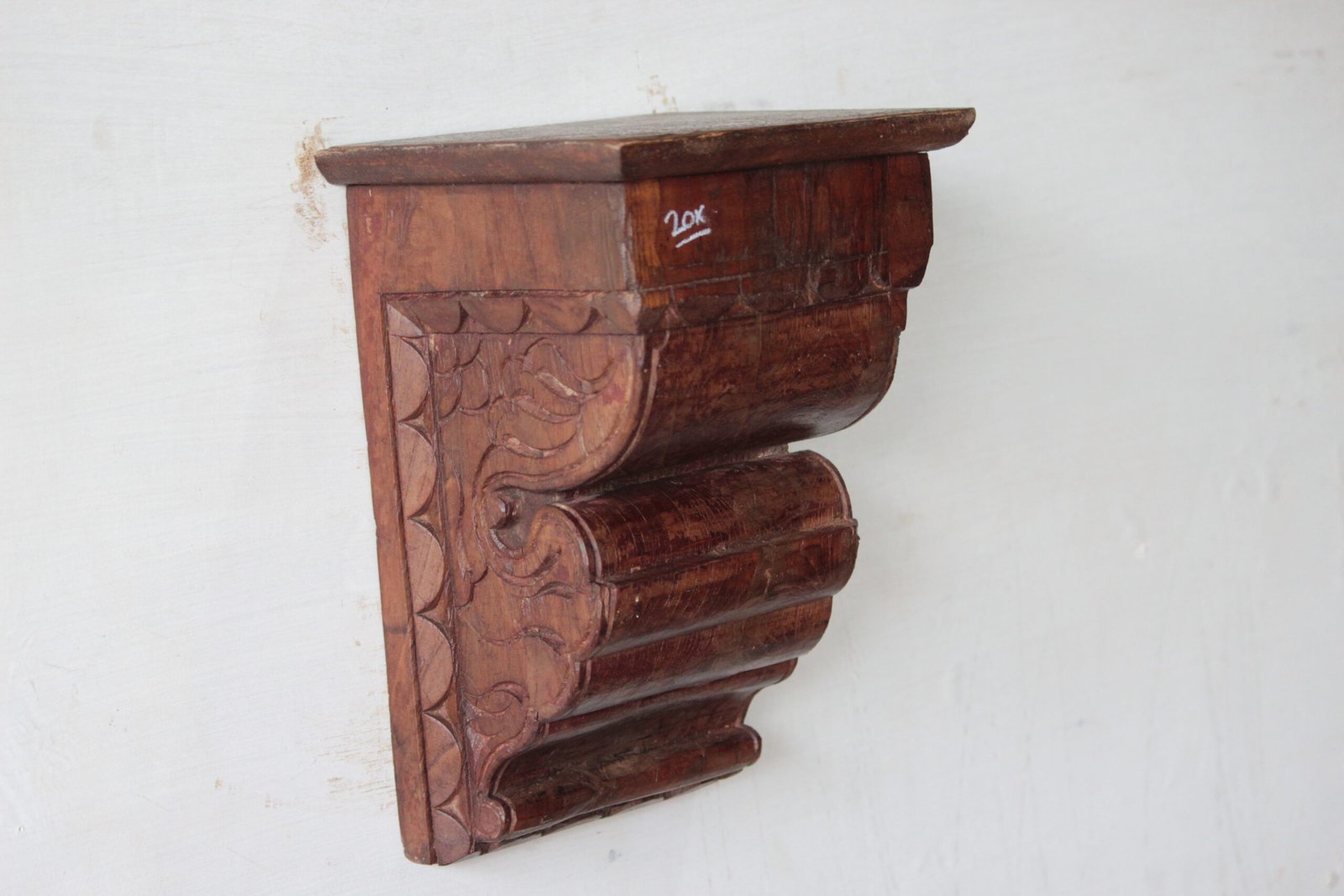 Its classic design and sturdy construction make it ideal for displaying small decorative items, books, or even plants, while also serving as a practical storage solution. Whether you’re looking to enhance your living room, bedroom, or hallway, this shelf is versatile enough to complement any space with its timeless appeal. The warm, rich tones of the wood add a welcoming atmosphere, making it a perfect choice for those who appreciate vintage aesthetics and handmade items. Ideal for those seeking a unique, handcrafted addition to their home, this shelf will elevate your decor and bring a touch of rustic charm to your space.