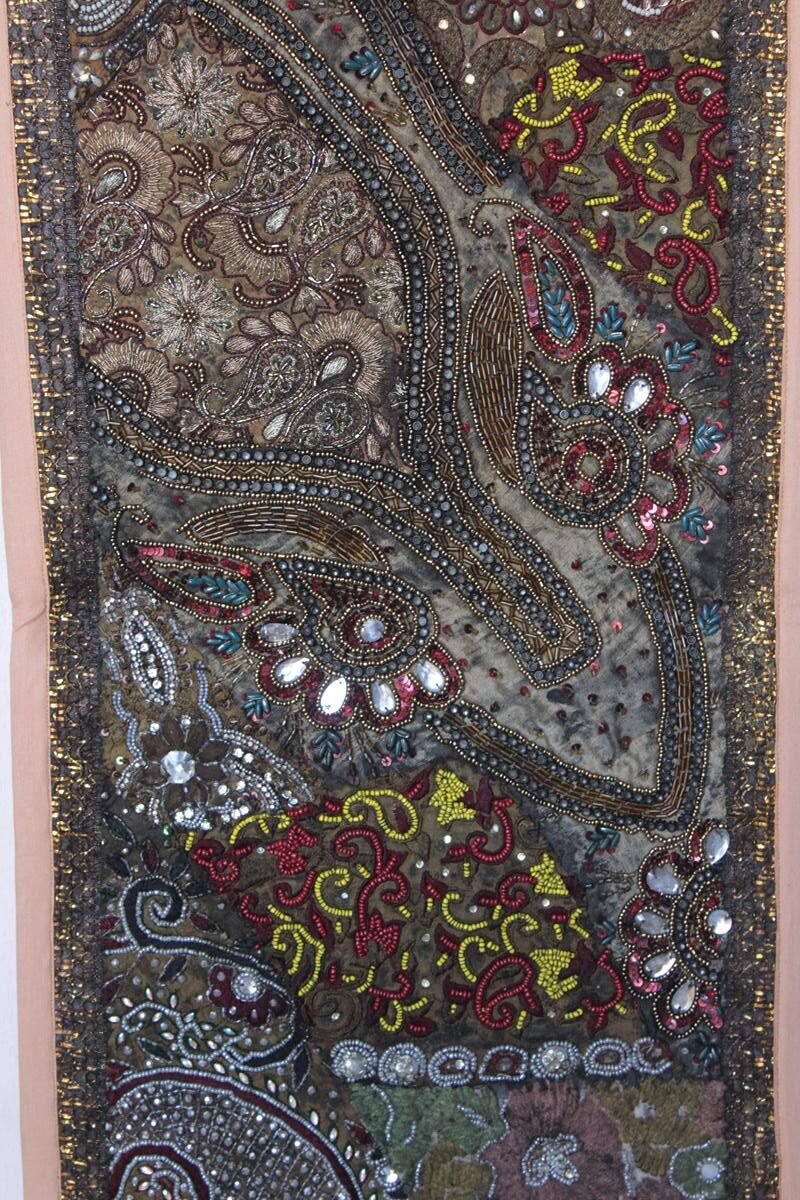 Lovingly handcrafted using reclaimed vintage fabrics, this tapestry features intricate embroidery, mirror work, and detailed stitching—each panel telling its own story. Whether you’re decorating your living room, bedroom, hallway, or meditation space, this eye-catching boho wall hanging adds depth, texture, and cultural richness.