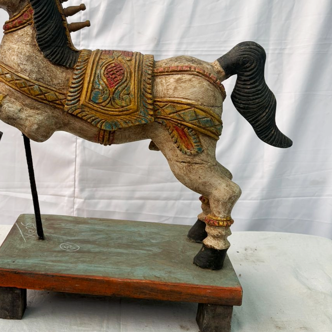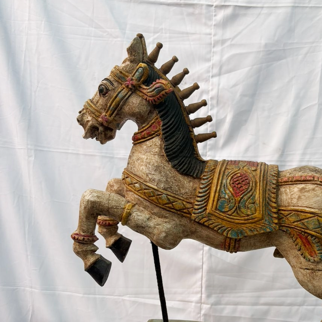 1.8 Ft Hand Carved Teak Wood Jumping Horse Figurine – Majestic Luxury Home Decor