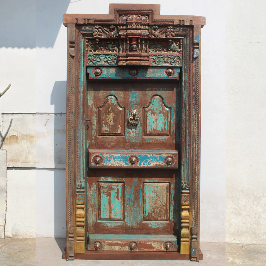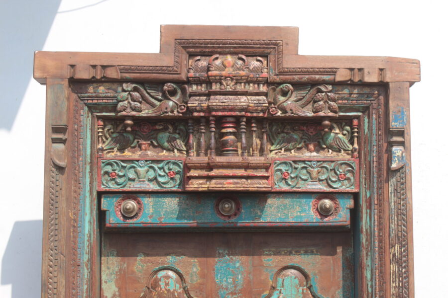 This South Indian door displays truly remarkable and reflects the rich artistic heritage of the Tradition. These doors are adorned with intricate carvings, elaborate patterns, and ornate with Brass, showcasing our skilled craftsmanship. These doors are inspired by nature, folklore, mythology, and religious motifs