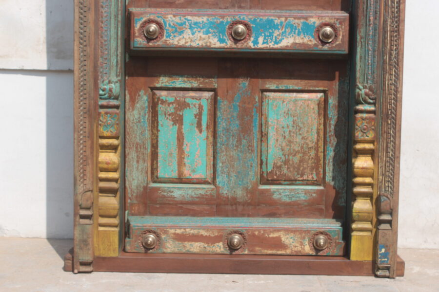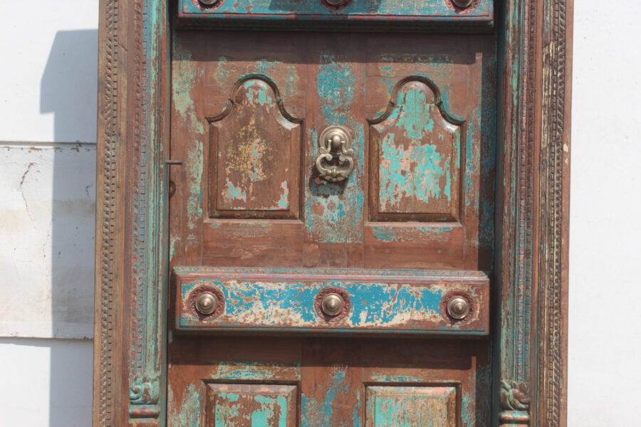 Crafted from sturdy teak wood, these doors are built to withstand the elements, making them a perfect fit for all the climates. While they bear the marks of age and history, they remain fully functional, promising many more years of service.