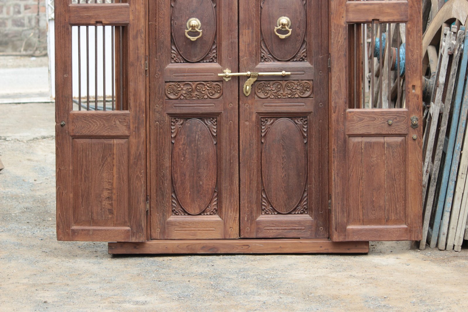 A refined finish enhances the natural grain and texture of the wood, giving the door a rich, warm appearance. This finish also adds a protective layer, helping to guard against environmental elements while preserving its beauty over time. Whether placed in a heritage-style home, a grand villa, or a contemporary residence, the door blends seamlessly and becomes a focal point.