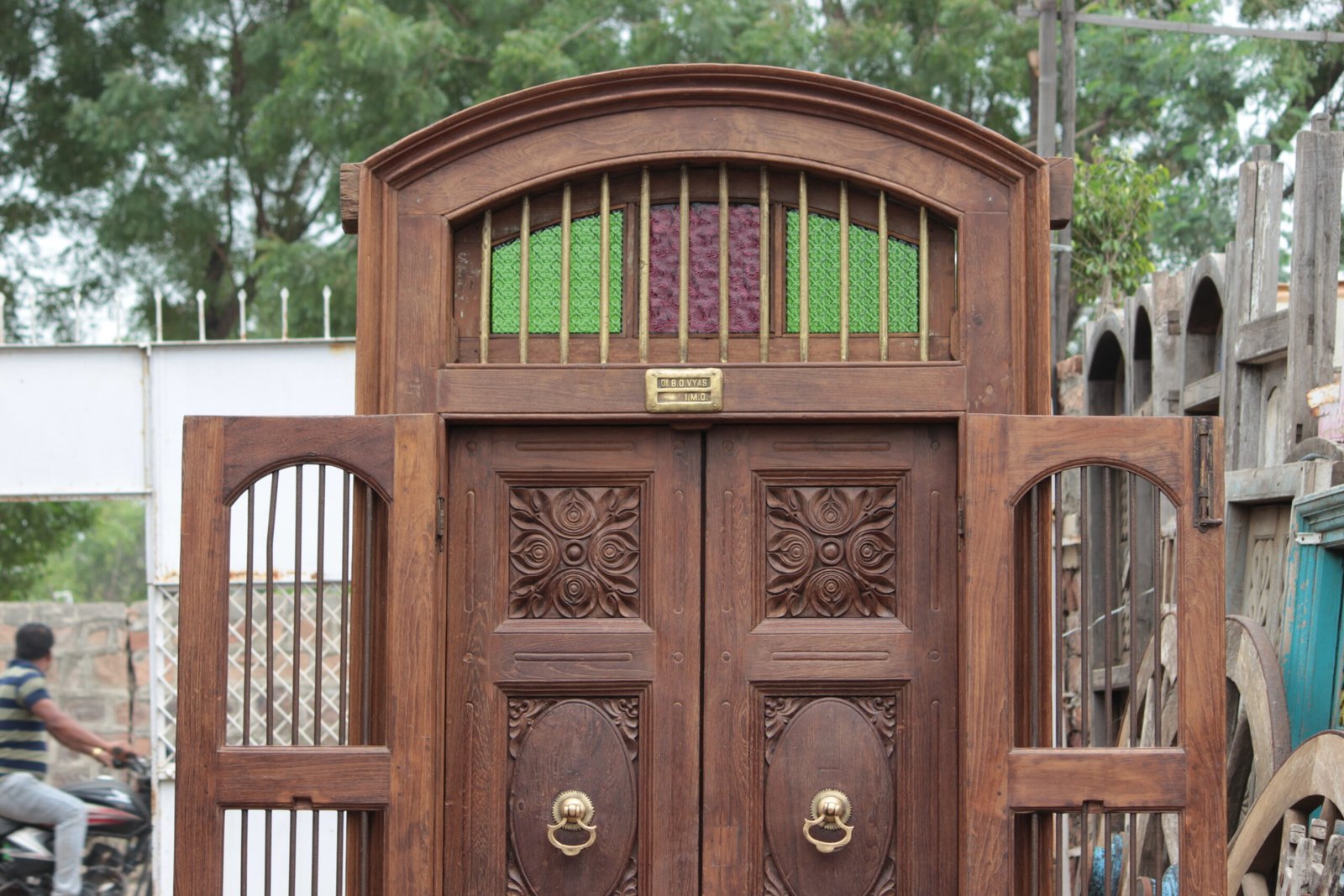 Elevate your entrance with a door that embodies grandeur, durability, and artistic excellence. This 8.11 ft luxury wooden double door is thoughtfully designed to create a striking first