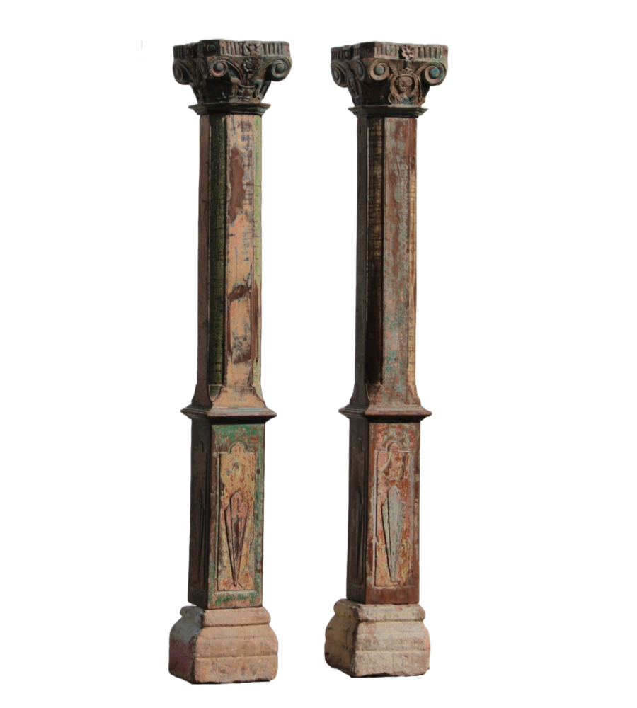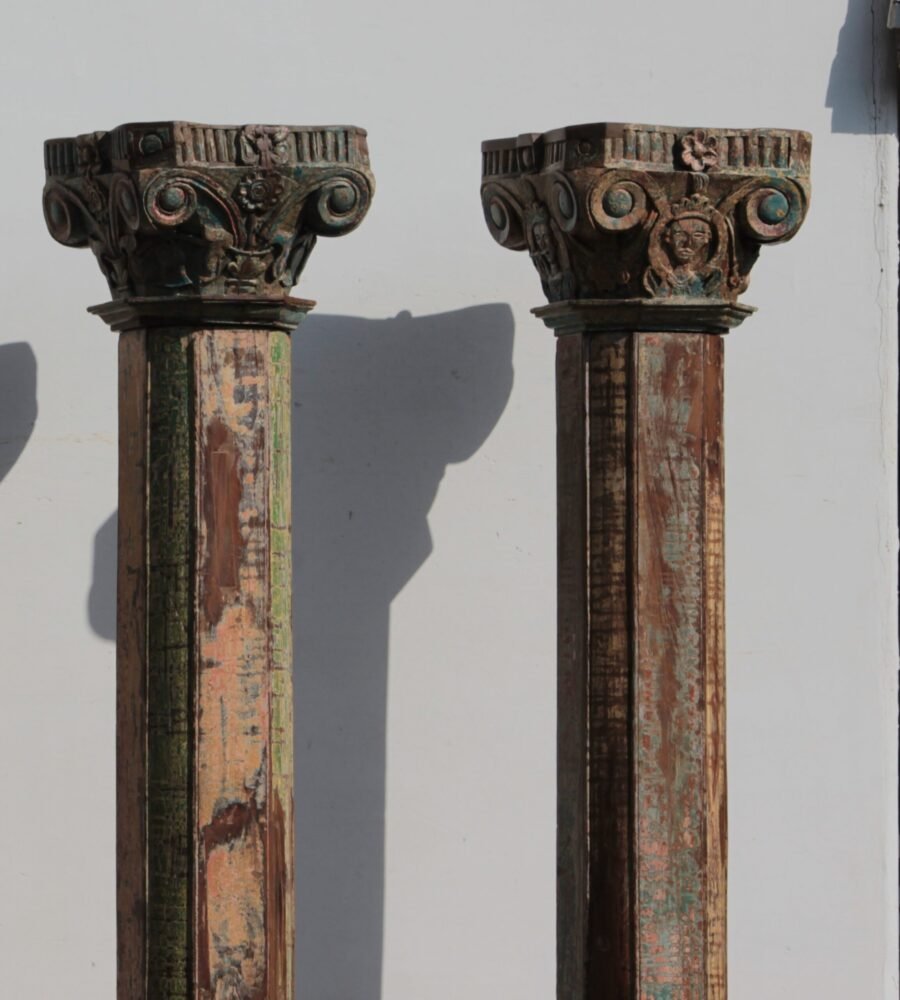 Each old Indian teak wood pillar is a testament to traditional Indian architecture. Intricate carvings and a rich patina tell stories of a bygone era, making each piece truly unique.
