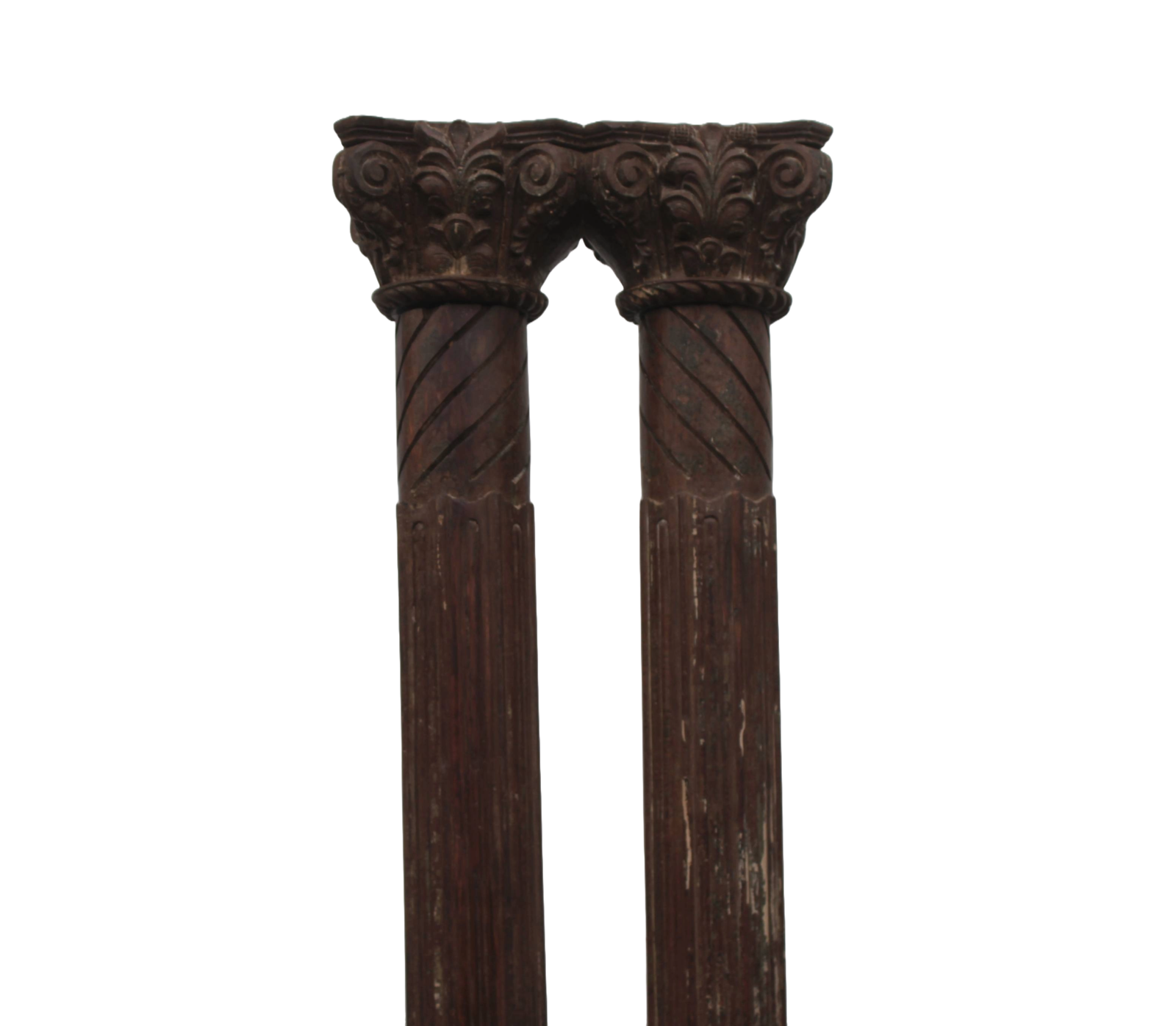 Structurally sound and sturdy in overall extremely good condition considering age and use, wonderful wood texture and color, original patina. The columns are made up of three pieces, the base and the capital are set onto of the columns separately.