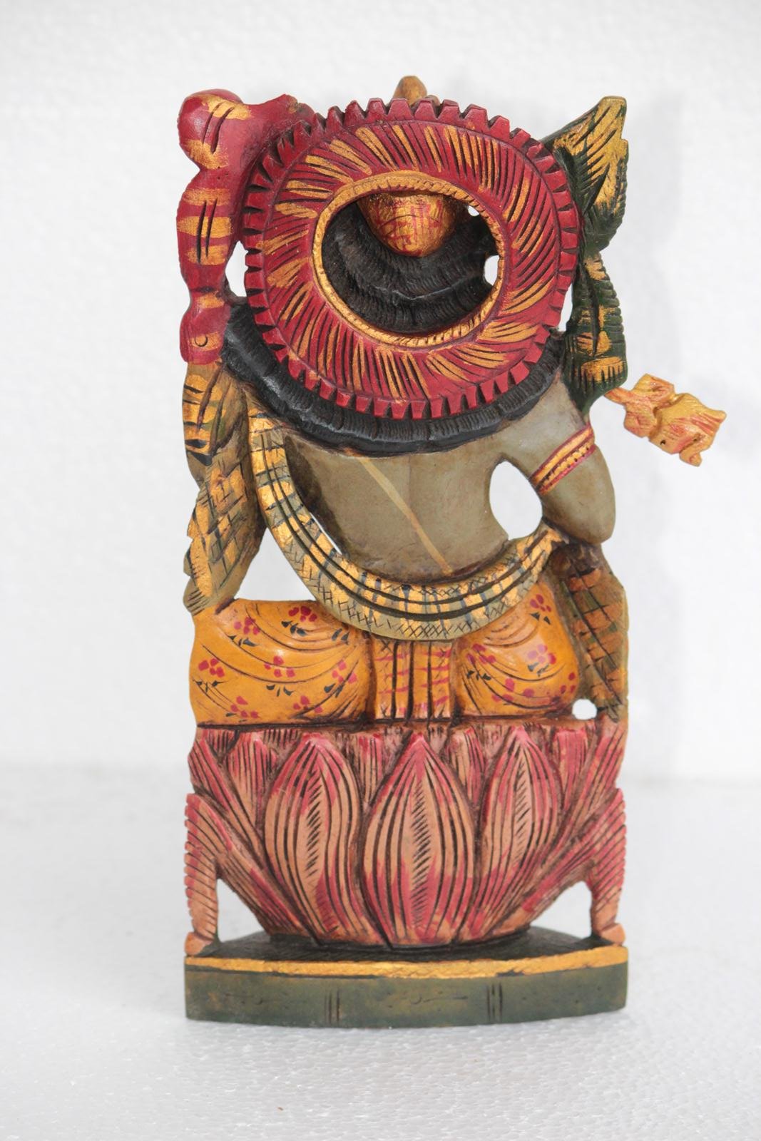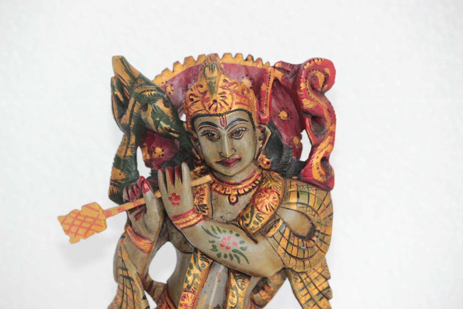 NEW WOODEN LORD KRISHNA FIGURE ANTIQUE STYLE HOME DECORATIVE COLLECTIBLE
