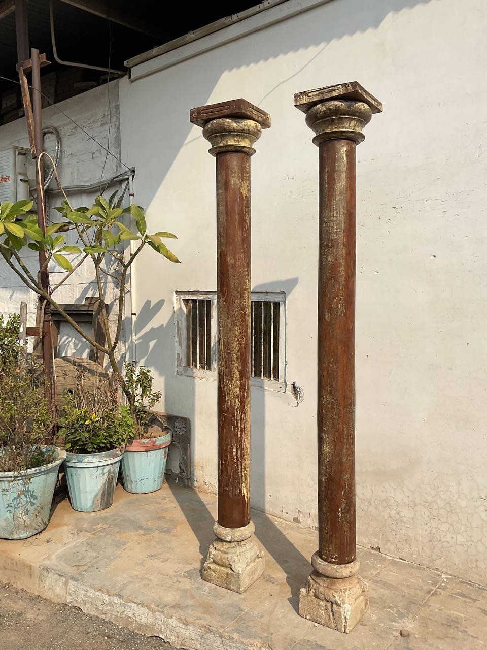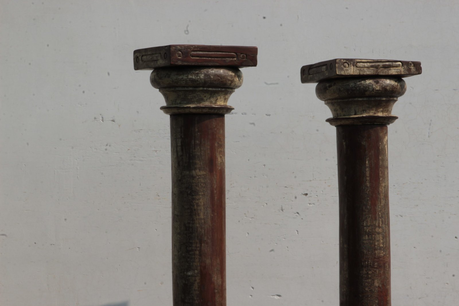 The natural patina and worn details bring a sense of nostalgia, ideal for creating a vintage-inspired ambiance in your home or garden. Whether displayed as standalone pieces or used as elegant candle holders or plant stands, these old wooden pillars are versatile enough to complement both traditional and modern settings.