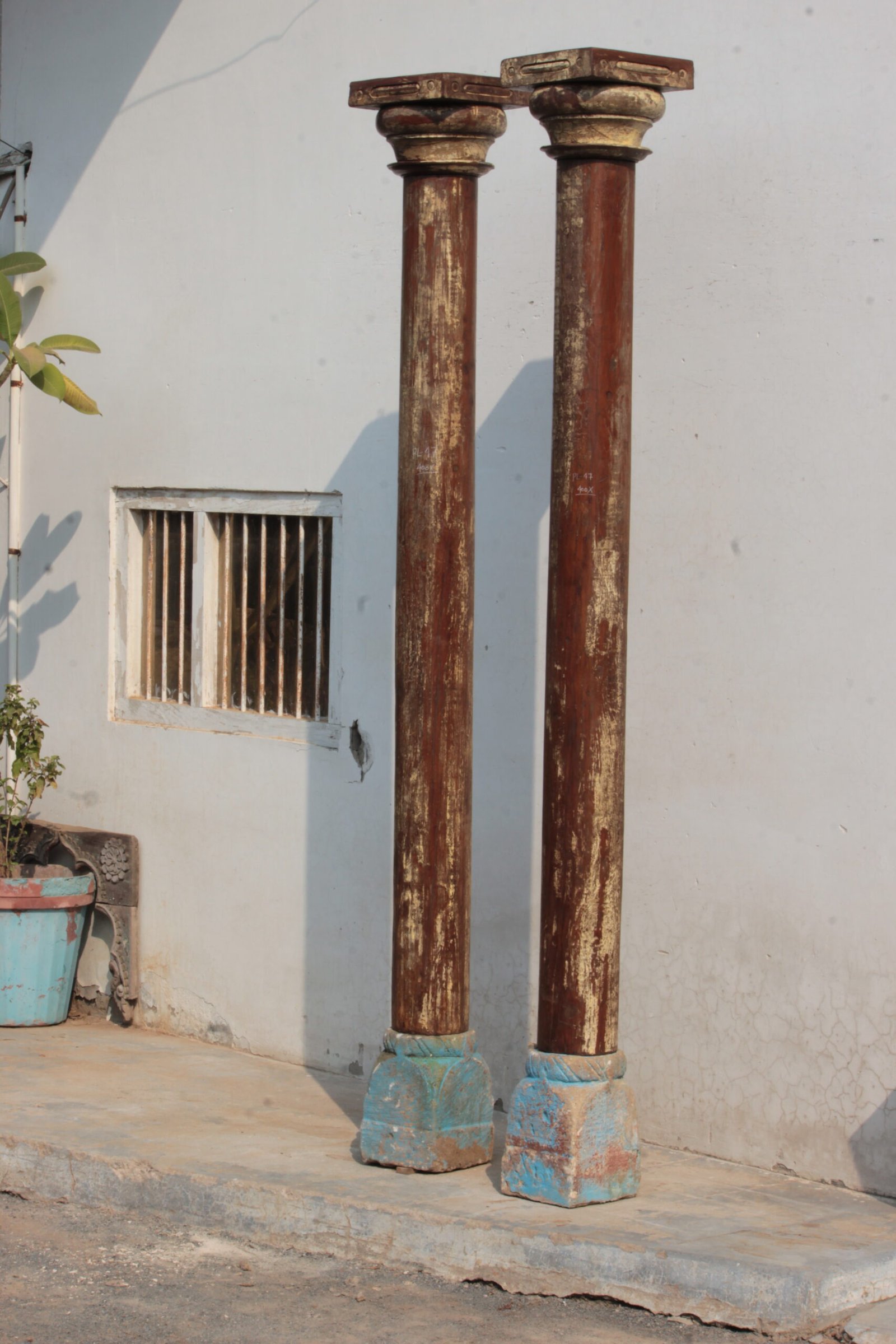 Old Wooden Pillar Set of 2