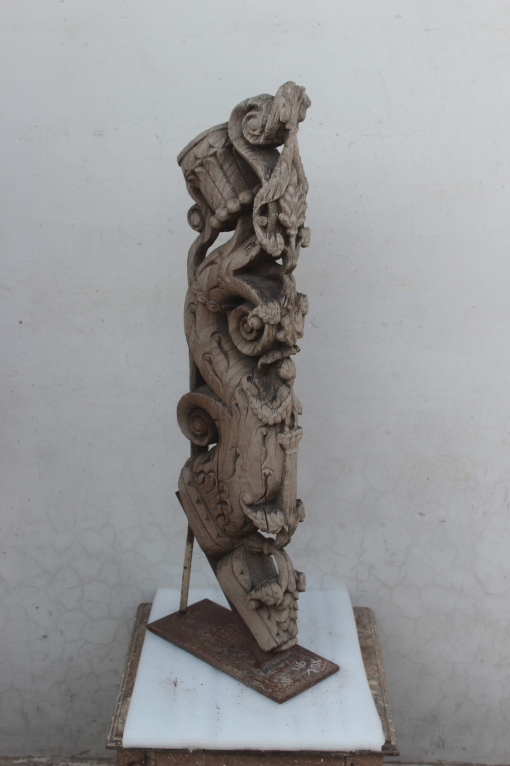 This beautifully preserved original antique wooden bracket showcases masterful hand-carved details and a rich, timeworn finish that speaks to its age and history. Every curve, cut, and surface tells a story—reflecting the skilled craftsmanship and artistic sensibility of a bygone era. With its authentic patina, subtle weathering, and ornate design, this piece brings depth and character to any interior.