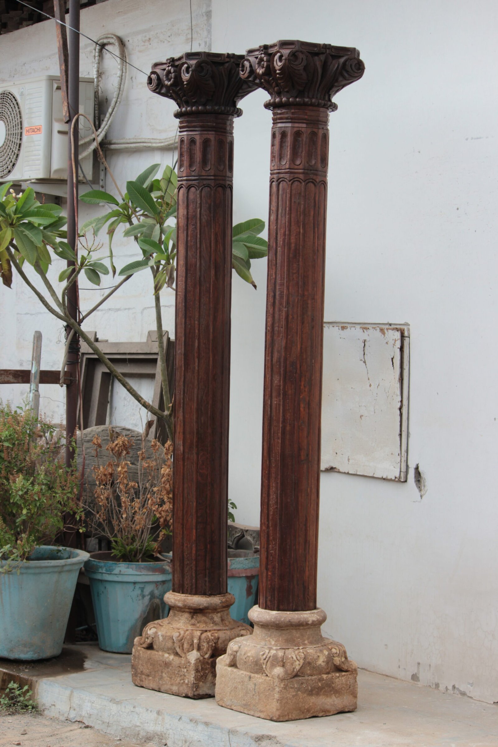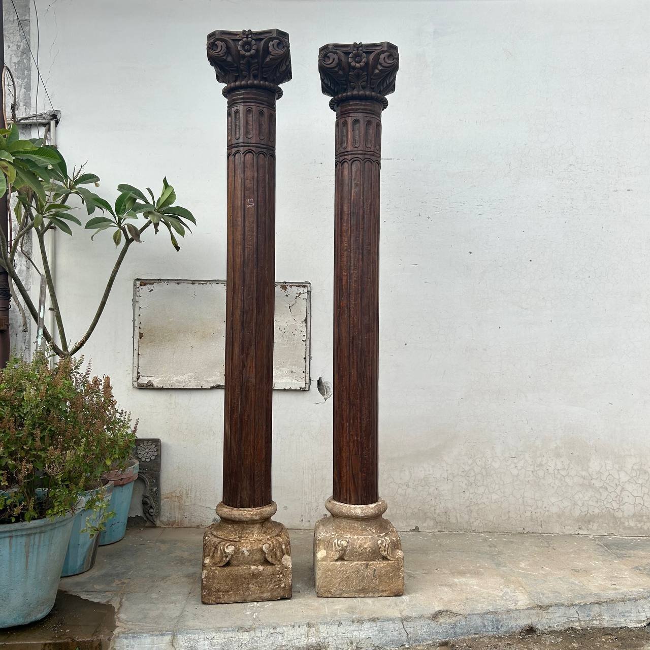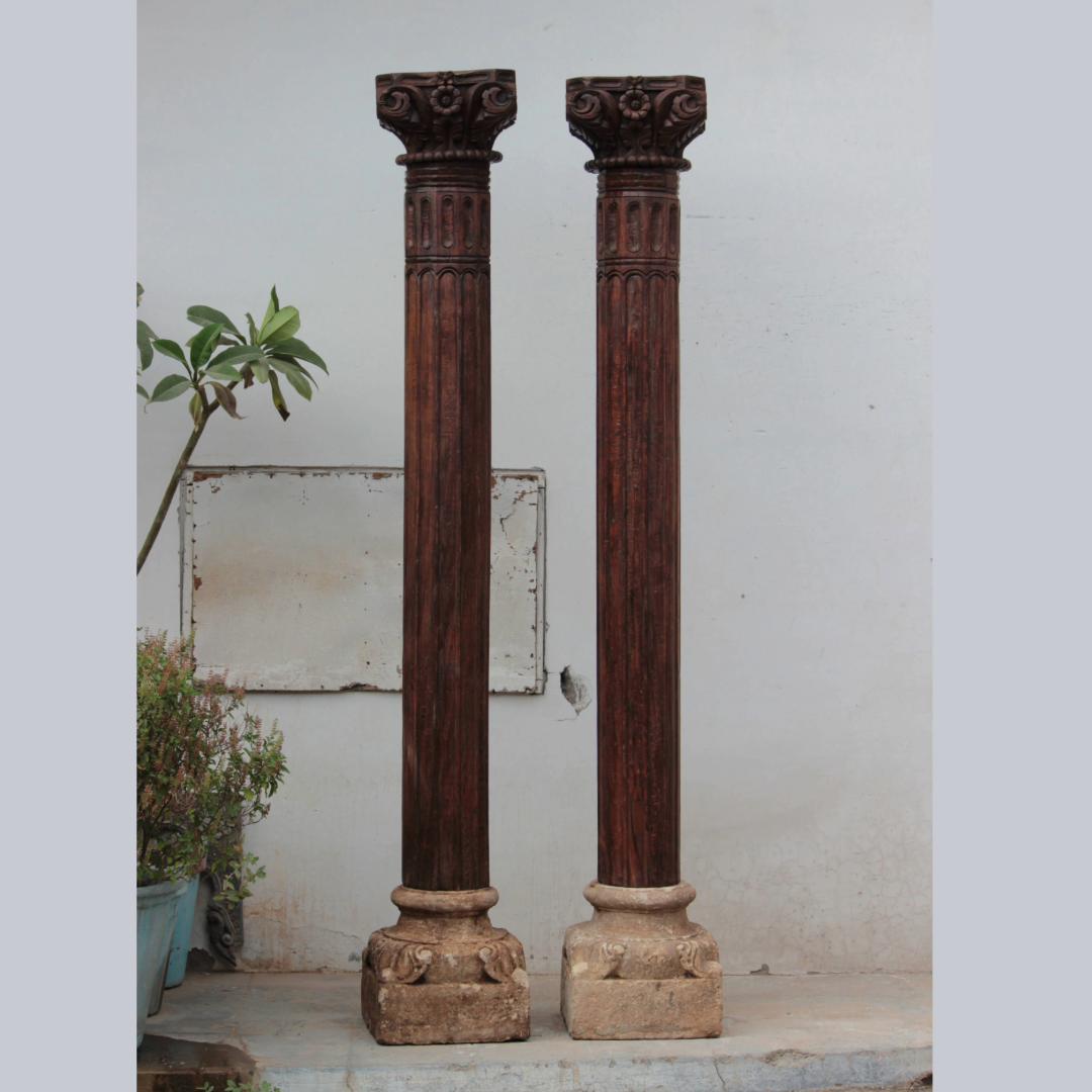 Pair of 8.1 feet Indian Columns with Stone Base – Your Home Furniture Store